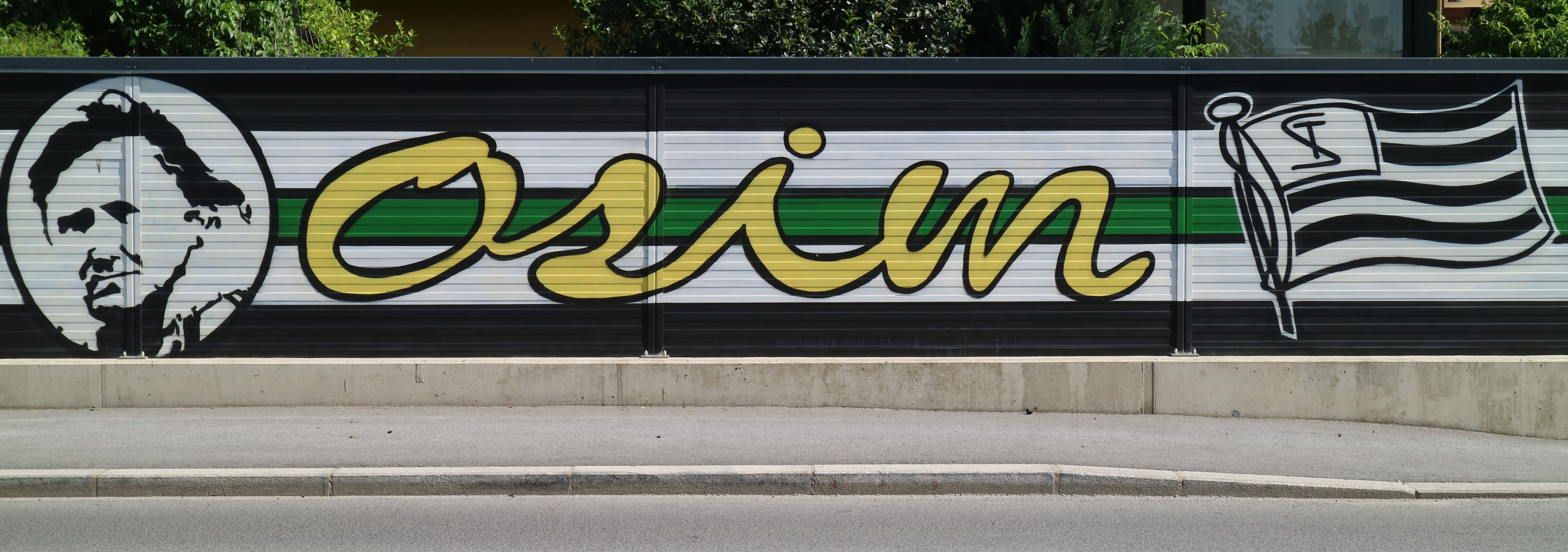 2022년 사망 후 그라츠 푼티감 구역 거리에 그려진 오심 벽화