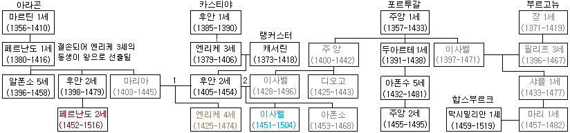 아라곤 왕비 | 재위 기간: 1479년 1월 20일 – 1504년 11월 26일 상세 정보: 더 보기 |