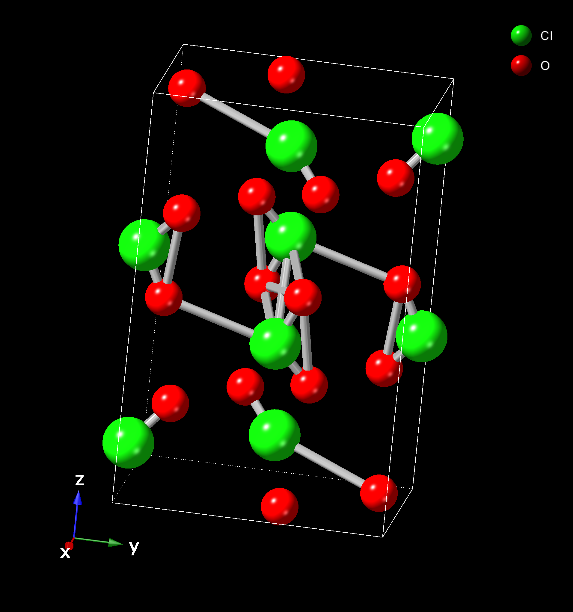 이산화 염소(ClO2)는 홀수의 원자가 전자를 가진 상자성 라디칼이다.[5] 이는 이량체화되지 않고 안정적으로 존재하는 드문 홀전자 분자 중 하나이다.[5] 결정 구조는 사방정계 Pbca 공간군에 속한다.[6]