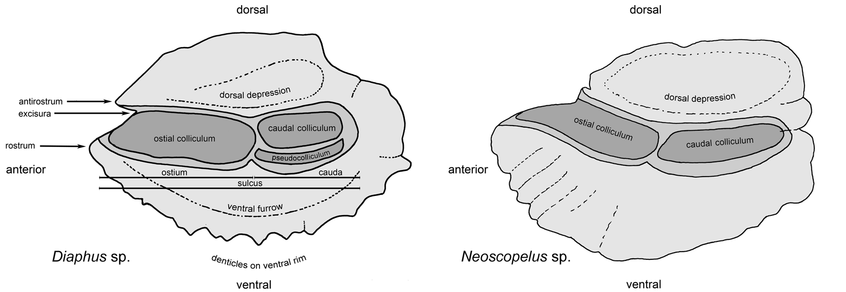 어류 척추, 턱뼈, 이빨 및 기타 유익한 골격 요소를 포함하면 이석 분석만으로는 먹이 식별과 정량화가 개선된다.[24] 이는 이석이 부서지기 쉬운 어류 종에게 특히 해당되지만, 대서양 고등어 (''Scomber scombrus'')와 대서양 청어 (''Clupea harengus'')와 같은 다른 특징적인 뼈에도 해당된다.[25]