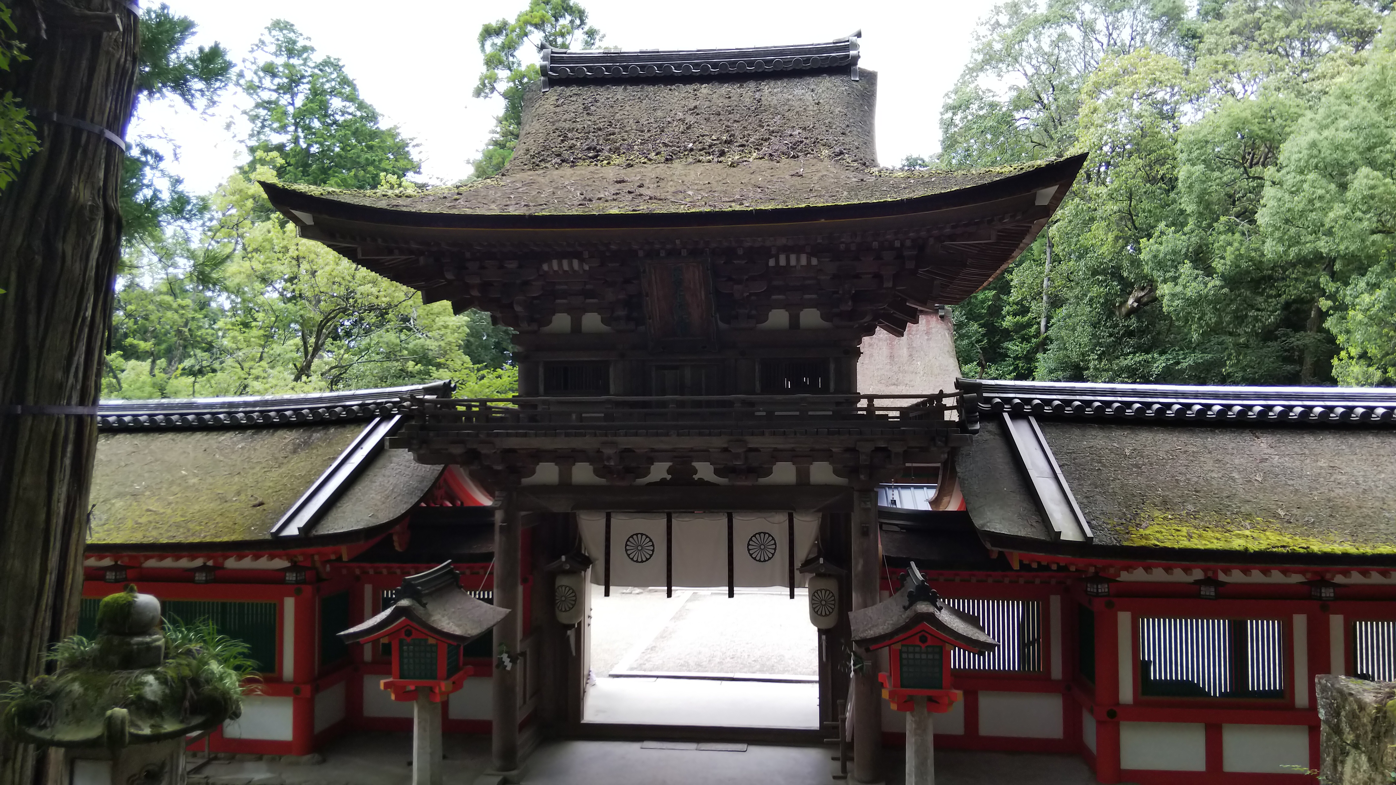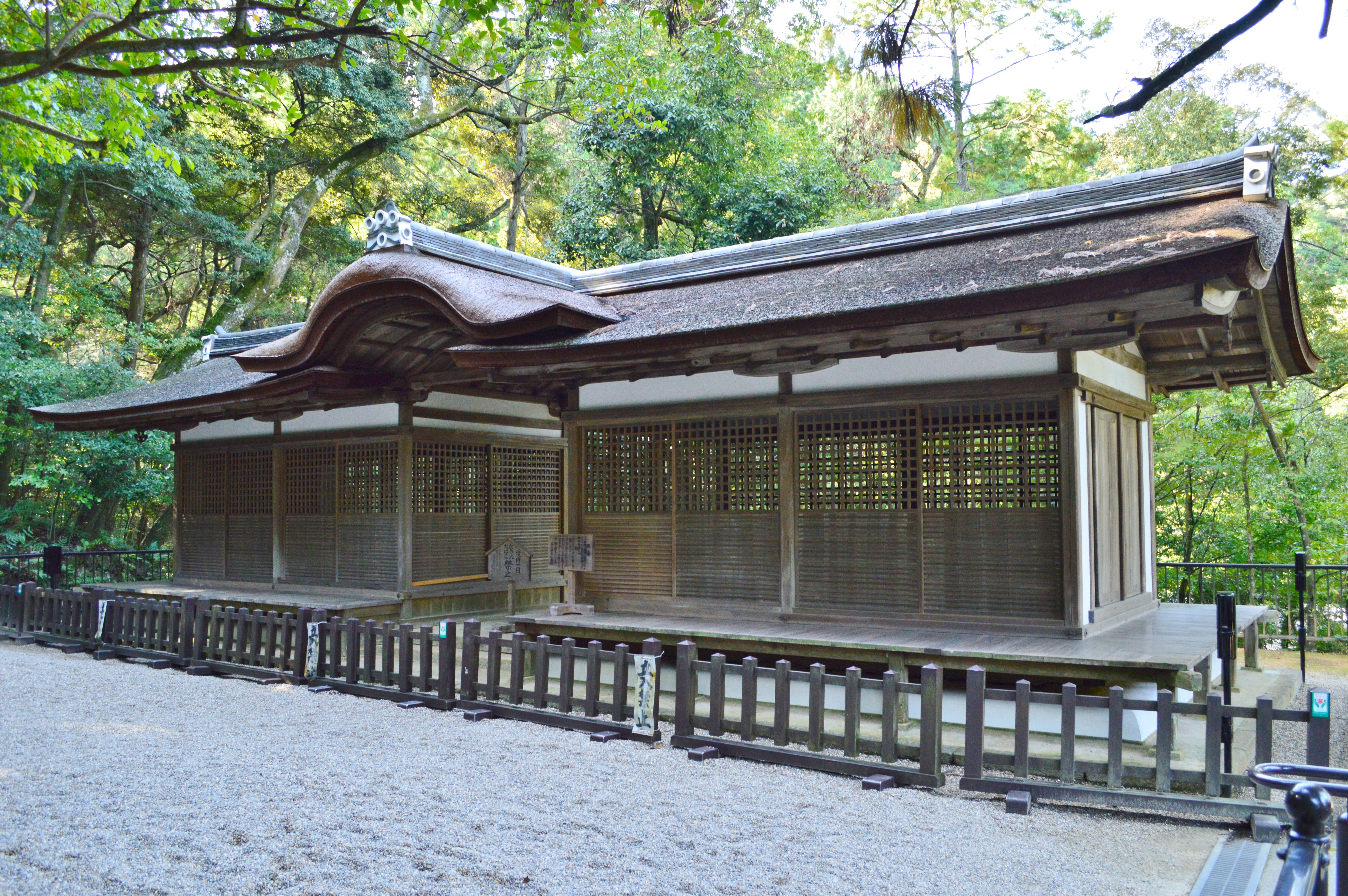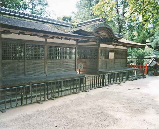 - 배전 (국보) - 입모양, 노송나무 껍질 지붕. 시라카와 천황이 신상제를 행하는 황거의 신가전을 배전으로 기증했다는 전승이 있지만, 실제 건립 연대는 가마쿠라 시대 초기로 보인다. 불당풍의 외관을 갖추고, 관(기둥을 관통하는 수평재)을 다용하는 등, 대불양의 요소가 보인다.