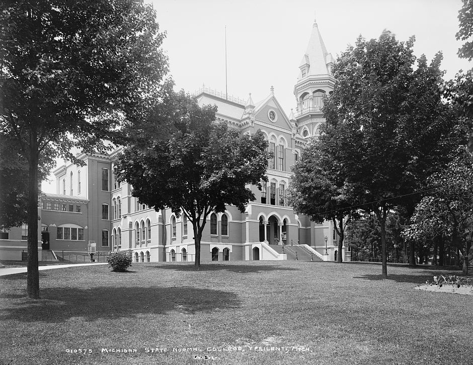 미시간 주 의회는 1849년 유럽의 영향을 받아 '''미시간 주립 사범학교'''를 설립했다. 이는 미국에서 13개 주의 영국 식민지 외에 최초의 사범학교였다. 학교는 1853년에 공식적으로 수업을 시작했다.[9] 1899년, 4년제 커리큘럼을 개발하면서 '''미시간 주립 사범대학'''이 되었고, 1956년에는 '''이스트 미시간 칼리지''', 1959년에 '''이스트 미시간 대학교'''로 명칭이 변경되었다.[9]