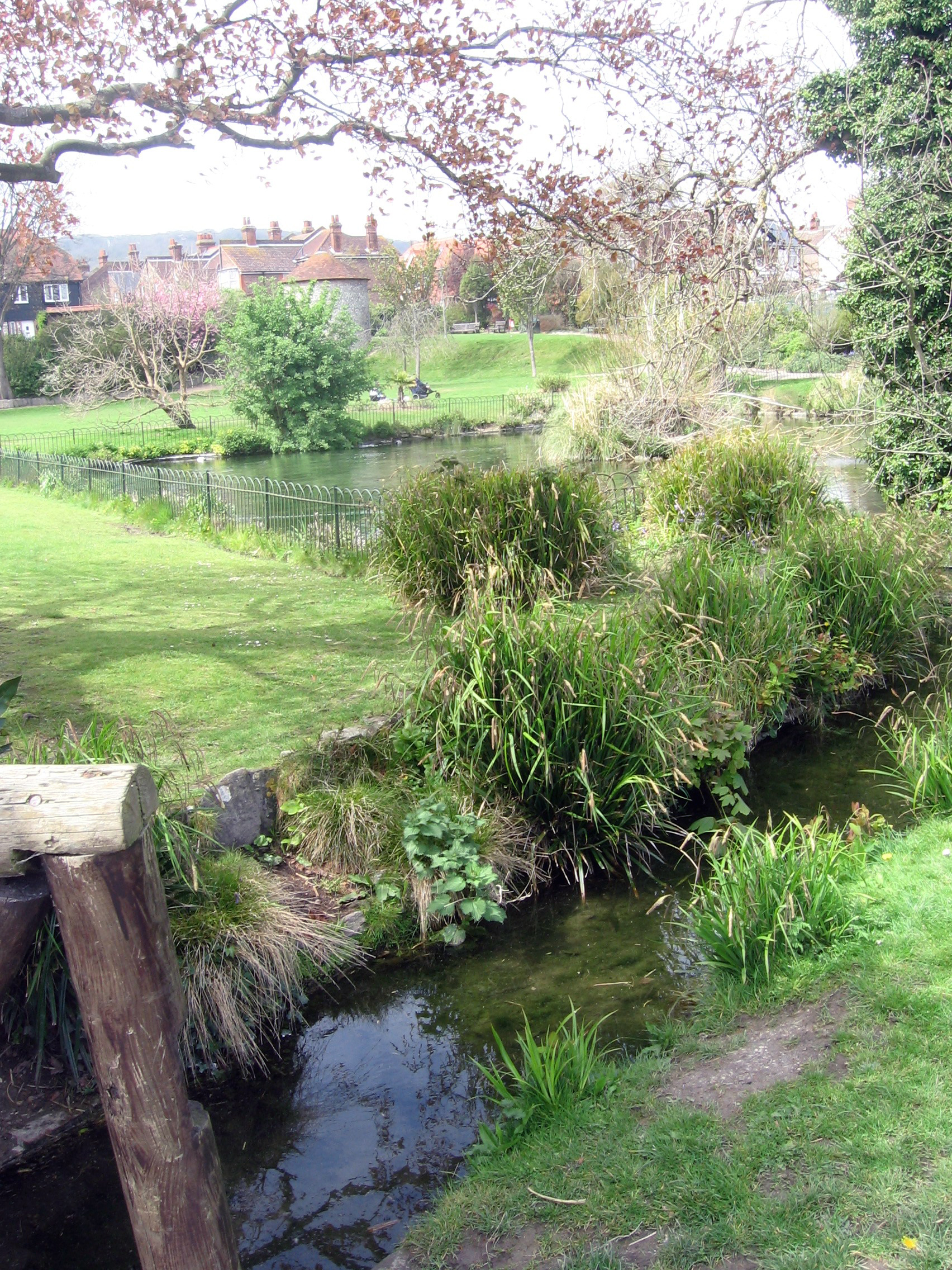 963년경의 앵글로색슨 칙허문서에는 번(Burne)에 있는 선착장과 개울이 묘사되어 있다.원래 이름은 오늘날 이스트본의 올드타운 지역을 흘러내리는 '번(Burne)' 또는 개울에서 유래했다. 번(Burne) 또는 본(Bourne)에서 볼 수 있는 것은 뭇콤 가든스(Motcombe Gardens)의 작은 연못뿐이다. 솟아나는 샘은 네프투누스 동상으로 보호받고 있다.[13] 뭇콤 가든스는 노르만 교회이며 색슨족의 '무트'(moot, 주민회의) 장소 자리에 있다고 하는 세인트 메리 교회가 내려다보고 있는데, 이것이 뭇콤이라는 이름의 유래이다.