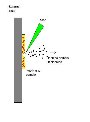 매트릭스 보조 레이저 탈착 이온화(MALDI)는 레이저를 사용하여 열에 불안정한 생체 고분자를 이온화하는 기술로, 분석 물질과 매트릭스를 혼합하여 결정화시킨 후 레이저를 조사하여 기체 상태로 만들어 이온화하며, 질량 분석기와 결합하여 다양한 분야에서 활용되고 관련 연구가 활발히 진행되고 있다. - 이온원 - 전자 이온화