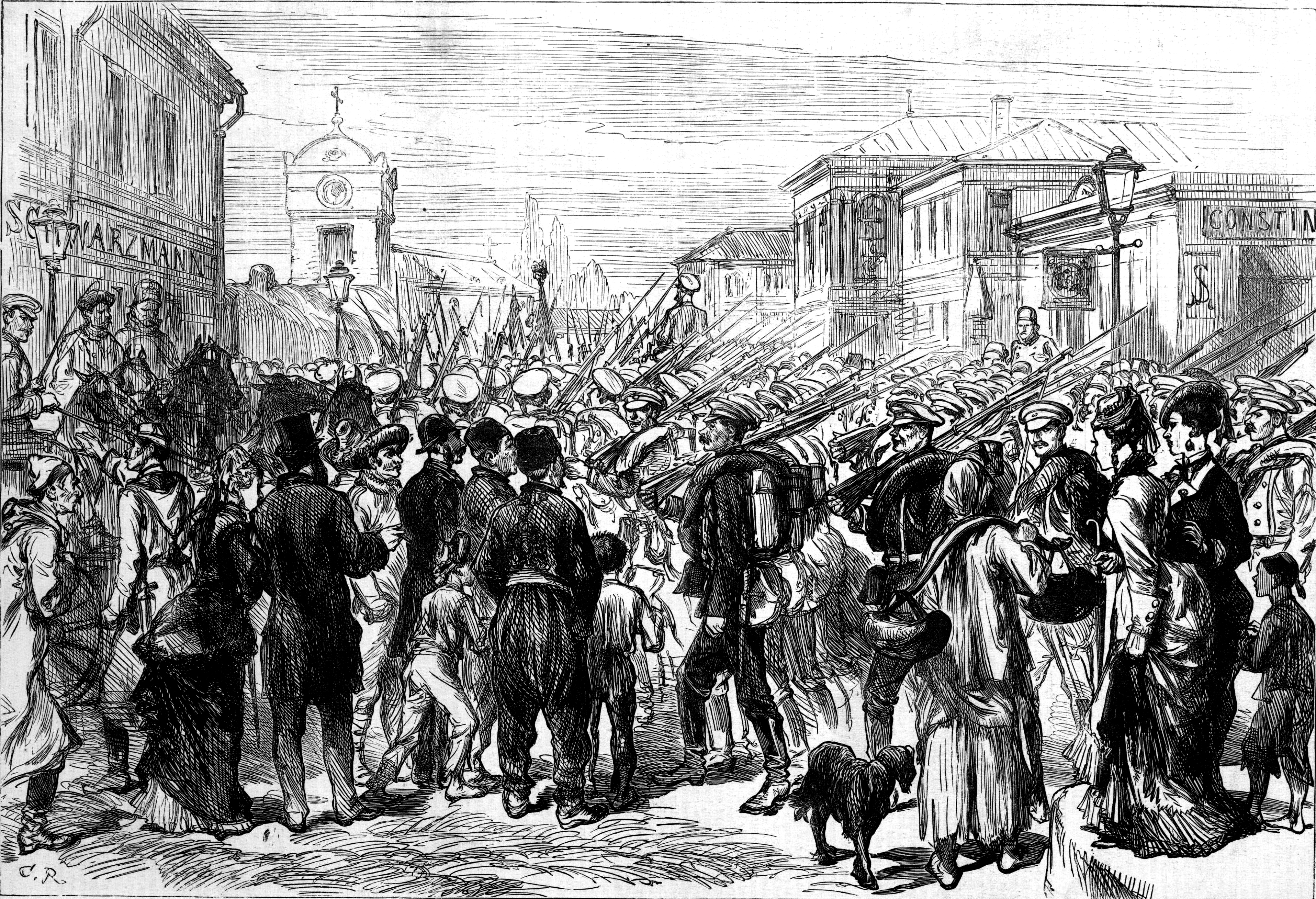 이온 루카 카라지알레는 젊은 시절 저널리스트로 활동하며 1876년 이온 브러티아누가 총리가 되면서 국가 자유주의 정치에서 멀어지기 시작했다.[64] 여러 증언에 따르면, 그는 보수 신문 ''Timpul''에서 미하이 에미네스쿠와 이온 슬라비치의 요청으로 함께 일하게 되었다.[11][65] 이 시기는 에미네스쿠가 1876년 3월에 ''Timpul''에 합류했다는 주장과[66] 1878년 1월에 합류하여 가장 늦게 도착했다는 주장이 엇갈린다.