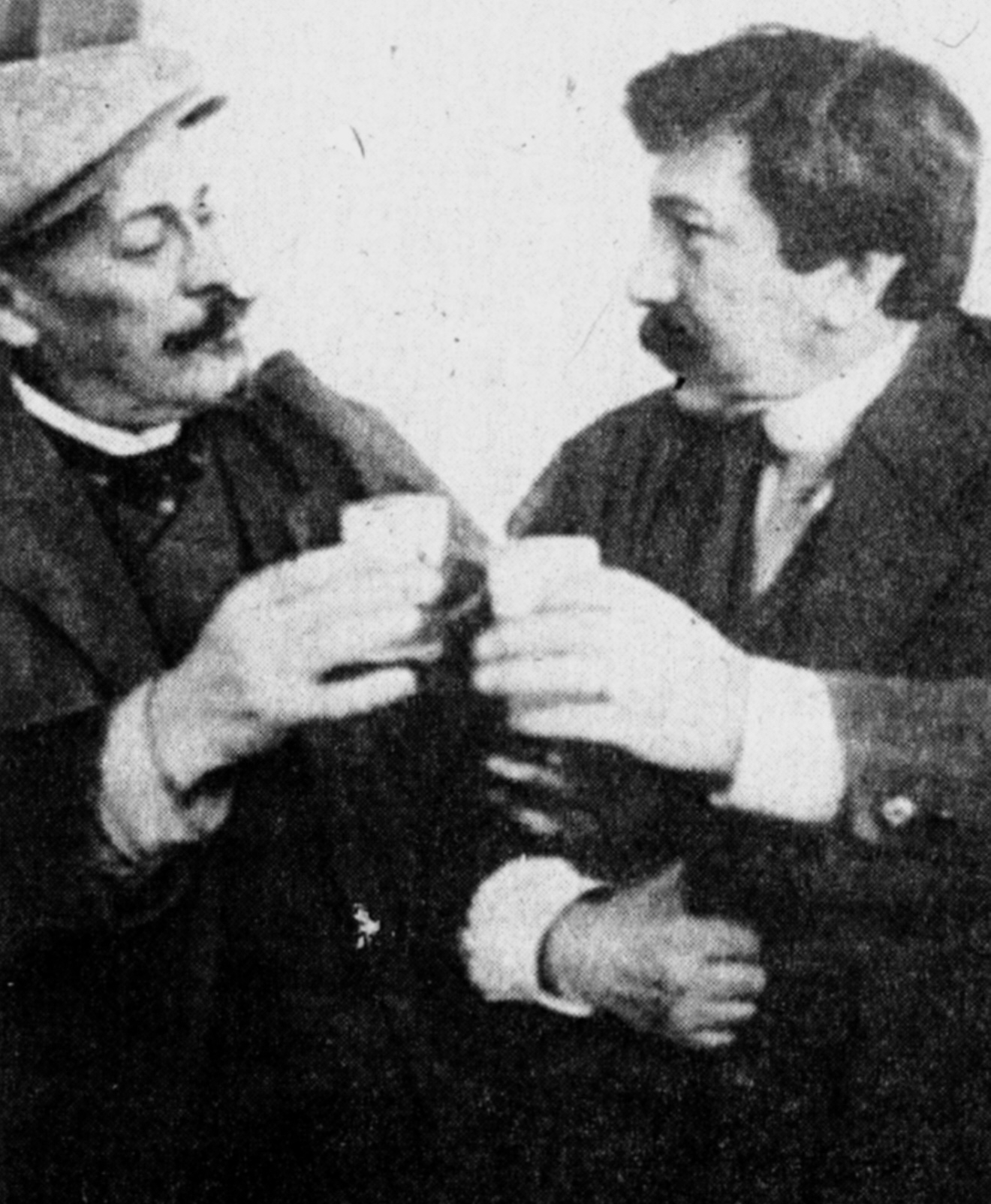 1892년 말, 카라지알레는 소설 ''Păcat'', ''O făclie de Paște'' 및 ''Om cu noroc''을 포함한 두 권의 산문집을 출판했다.[136] 이듬해, 사회주의 서클을 자주 방문하며 러시아 제국 출신 마르크스주의 사상가 콘스탄틴 도브로제아누-게레아와 친구가 되었다.[137] 재정 문제로 카라지알레는 기업가가 되어 1893년 11월 부쿠레슈티 립스카니 지역 가브로베니 여관 근처에 맥주 정원을 열었다.[6][29][138] 그는 곧 이웃 거리에 술집을 샀다.[6][29] 당시 편지에서 그는 트란실바니아로 이주하여 교사 경력을 시작하는 것을 고려하고 있었다.[6]