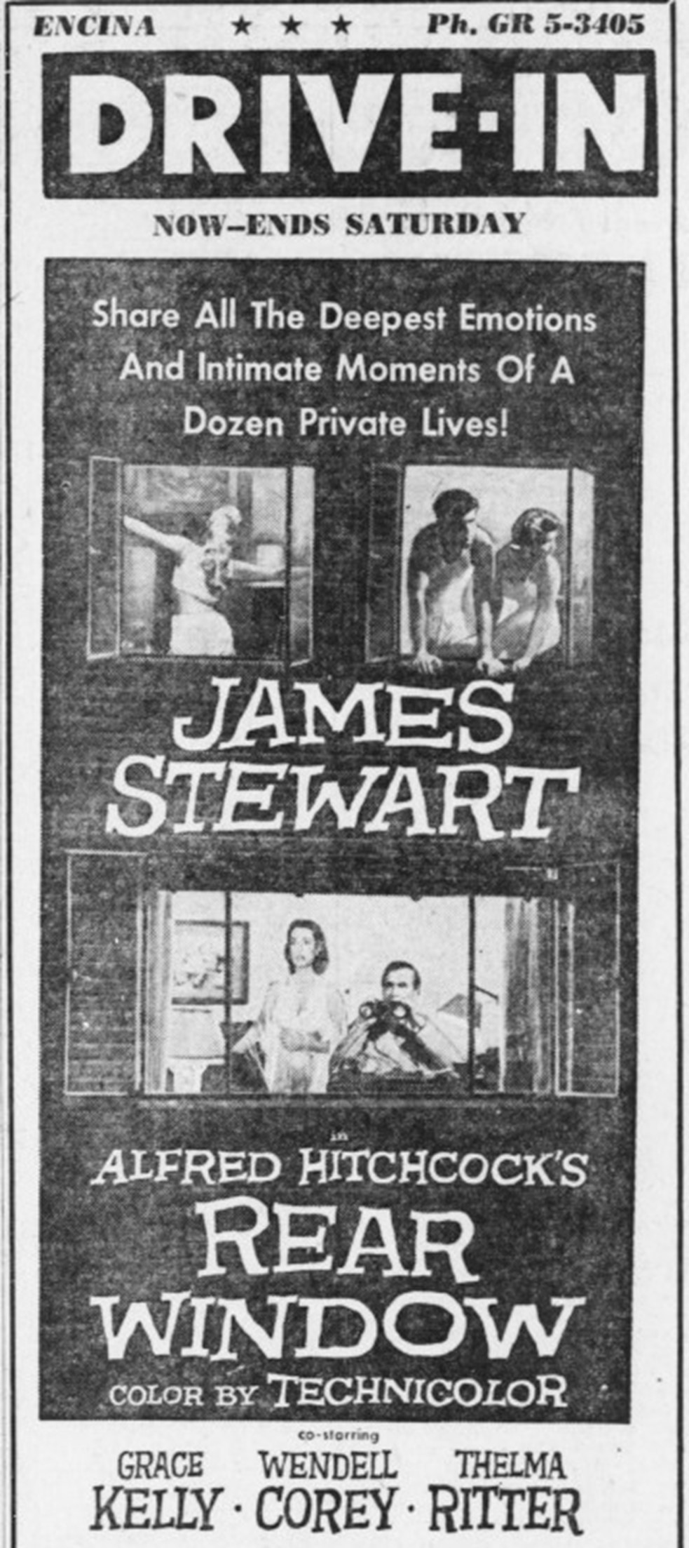 - 작중 제프가 사는 아파트의 주소는 뉴욕시 그리니치 빌리지 서쪽 9번가 125번지로 되어 있지만, 서쪽 9번가에 125번지는 존재하지 않는다. 스튜디오에 재현된 중정은 크리스토퍼 스트리트 125번지 등의 뒤편에 펼쳐진 중정(크리스토퍼 스트리트, 허드슨 스트리트, 서쪽 10번가에 둘러싸여 있다)을 베이스로 한 것이며, 실제 중정의 경관은 지금도 거의 변하지 않았다.