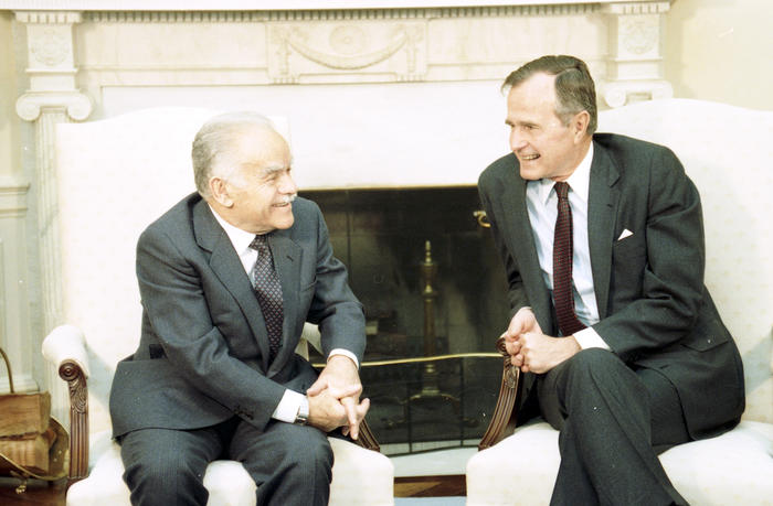 그러나 중동 평화 문제에 있어서 샤미르는 강경한 입장을 고수했다. 걸프 전쟁 이후 미국의 압력으로 1991년 10월 마드리드 평화 회의에 참석했지만, 팔레스타인 해방 기구(PLO)와의 대화를 거부하는 등 기존의 입장을 바꾸지 않았다. 이는 미국과의 관계 악화로 이어지기도 했다. 샤미르는 1997년 한 인터뷰에서 "아랍인들은 항상 우리를 멸망시키는 것을 꿈꾸고 있다. 나는 그들이 이스라엘을 이 지역의 일부로 인정할 것이라고 생각하지 않는다"고 말하며 아랍 측에 대한 깊은 불신을 드러내기도 했다.[59]
