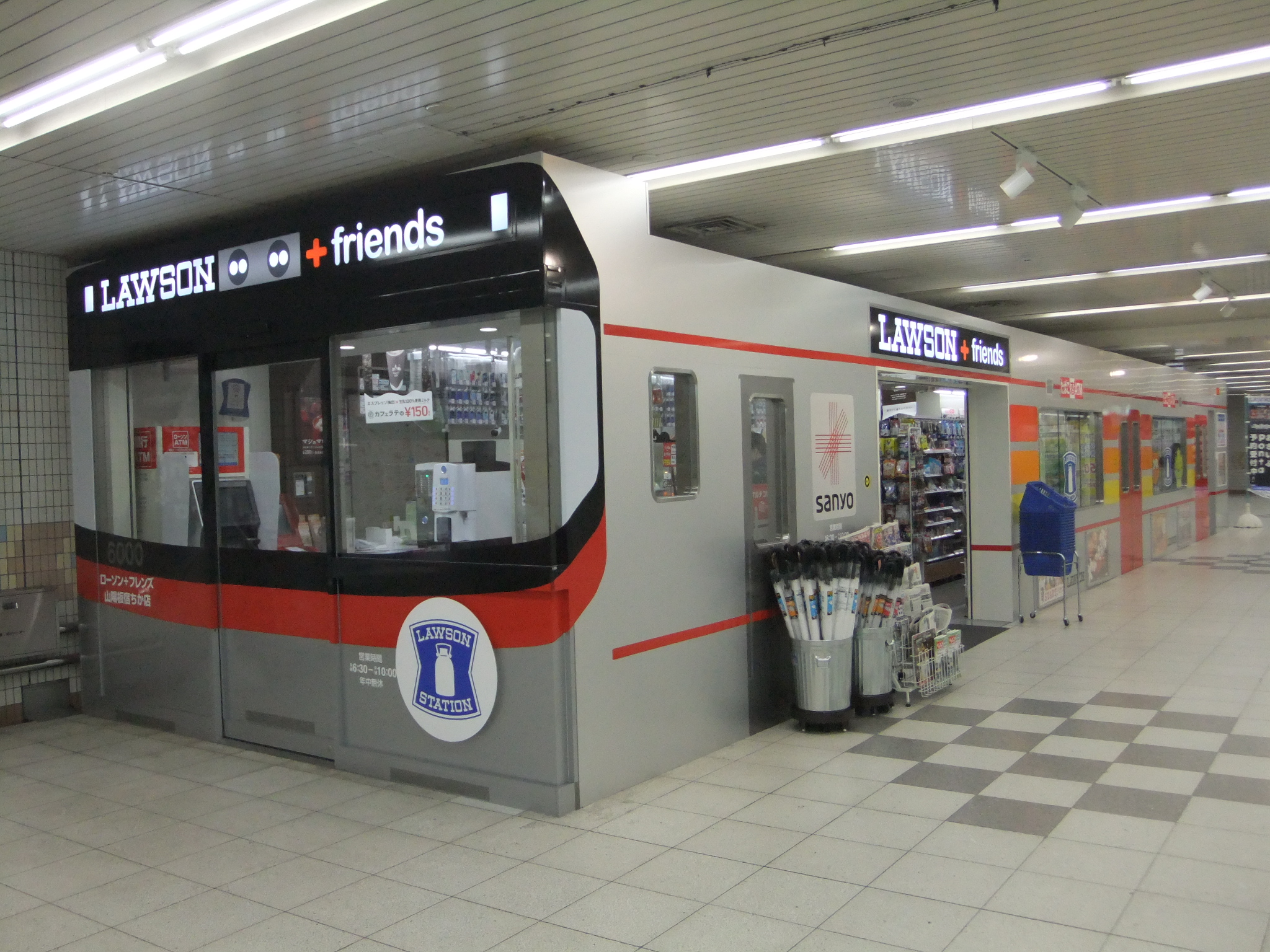 역 구내 매점 「프렌즈 숍」은 2016년 1월 「LAWSON+friends 산요 이타야도 지하점」으로 리뉴얼되었다. 점포 외관은 산요 6000계 전동차를 모티브로 하고 있다.[7]