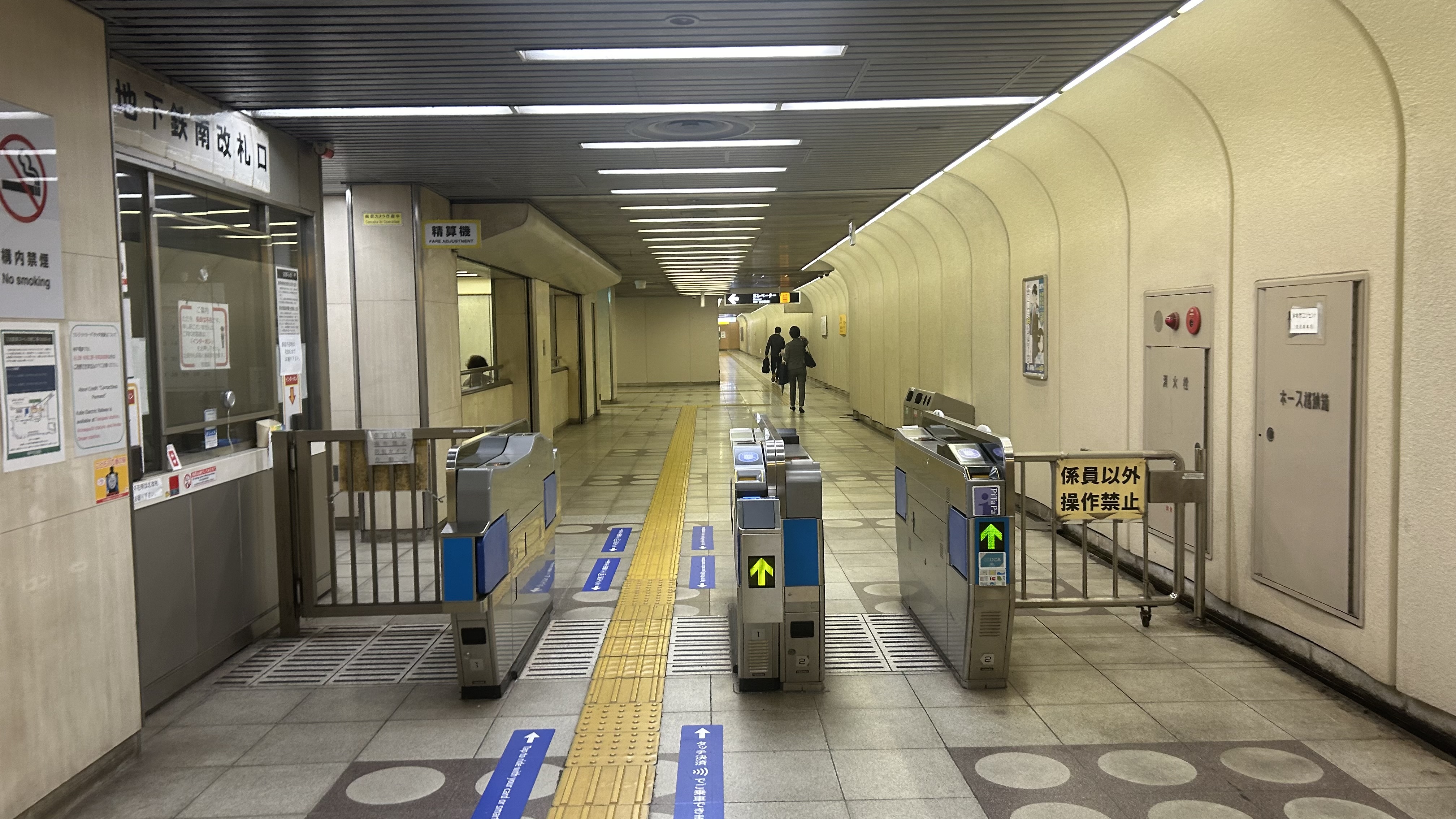 산요 전기 철도와 고베 시영 지하철 두 노선은 지하에서 서로 연결되어 환승할 수 있다. 그러나 고베 시영 지하철 승강장이 산요 전기 철도 승강장보다 더 깊은 곳에 있으며, 두 노선을 직접 잇는 환승 개찰구는 설치되어 있지 않다. 따라서 환승 시에는 일단 개찰구를 통과하여 밖으로 나간 후 다시 상대 노선의 개찰구로 들어가야 한다.