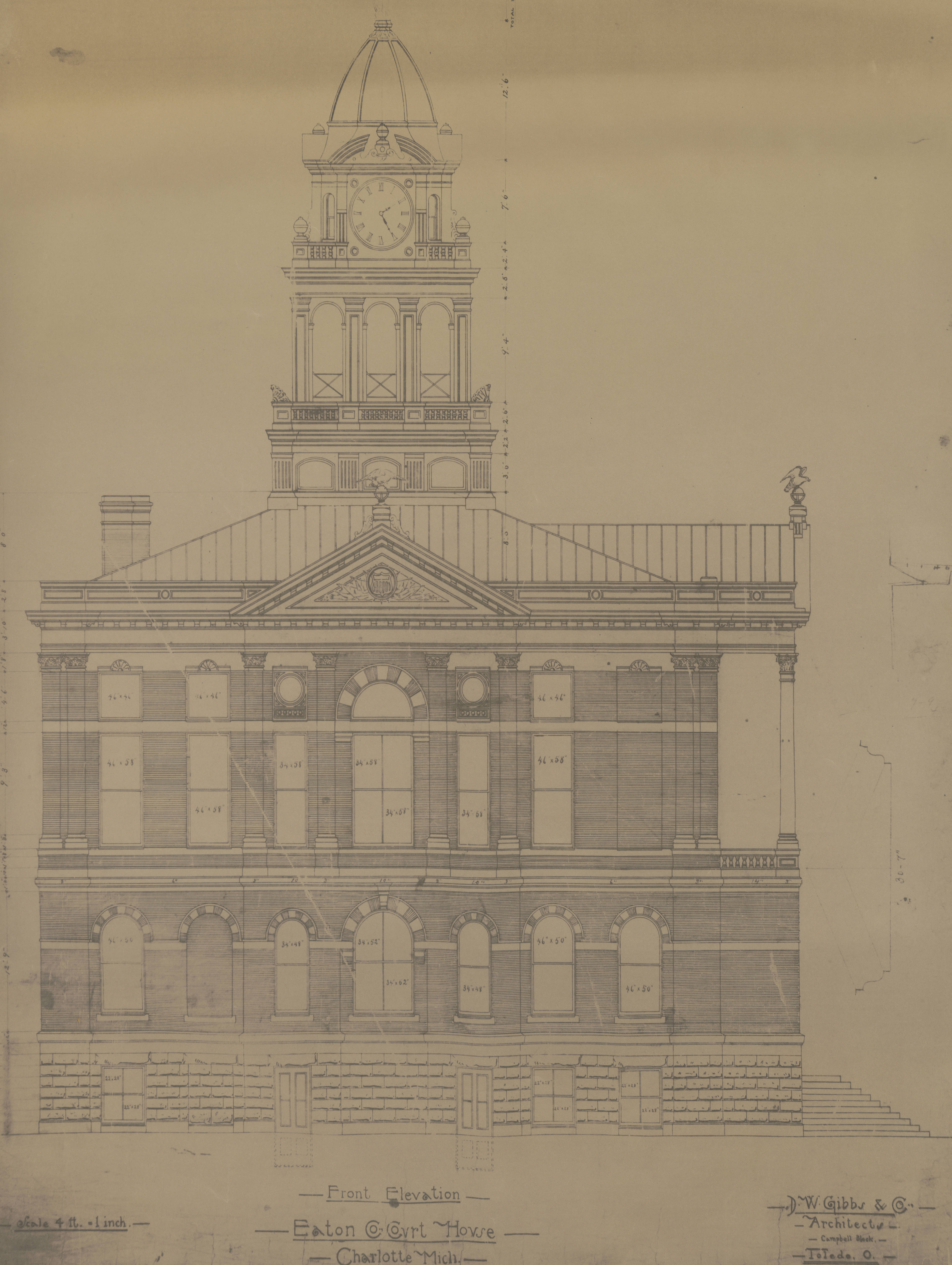 이턴 군은 1837년에 미개척지에서 조직되었으며, 미국의 육군 장관이었던 존 H. 이턴(John H. Eaton)의 이름을 따서 명명되었다.[4] 이 군은 미국 대통령 앤드루 잭슨(Andrew Jackson)의 내각 멤버의 이름을 따서 명명되었기 때문에 이른바 내각 군(Cabinet counties) 중 하나이다.[5]1832년, 측량사 조지 W. 반스(George W. Barnes)는 이턴 군 중부에 농가를 구입했다. 그 지역은 현재 샬럿에 포함되어 있다. 1833년 3월 21일, 그는 자치령 주지사 조지 B. 포터에게 군청 소재지를 찾도록 임명할 위원회 임명을 신청했다. 찰스 C. 해스칼, 스틸먼 블랜차드, 존 W. 스트롱이 임명되었고, 1833년 6월 4일, 위원회는 조지 W. 반스가 소유한 토지에 군청 소재지를 지정했다고 보고했다.