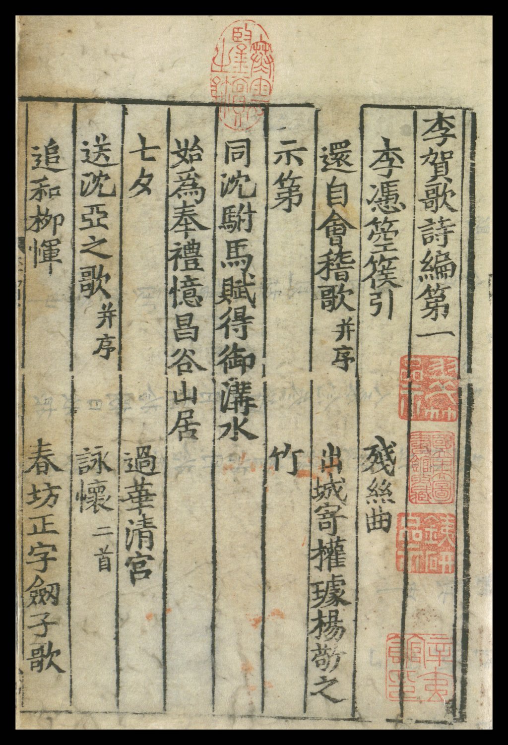 이하는 당나라 중기의 시인으로, 당 고조 이연의 후손이었다. 그는 14세에 문학적 재능을 보였으며, 17세에 한유에게 인정받았으나, 과거 시험에서 아버지의 이름과 같은 발음의 글자를 사용했다는 이유로 불합격했다. 이후 봉례랑 관직을 얻었지만, 낮은 직책에 만족하지 못하고 사임했다. 27세의 젊은 나이에 사망했으며, 그의 시는 독특한 색채 감각과 기괴한 소재, 절망적인 분위기로 특징지어진다. 이하의 시는 후대에 큰 영향을 미쳤으며, 한국과 일본에서도 번역되어 널리 읽히고 있다.