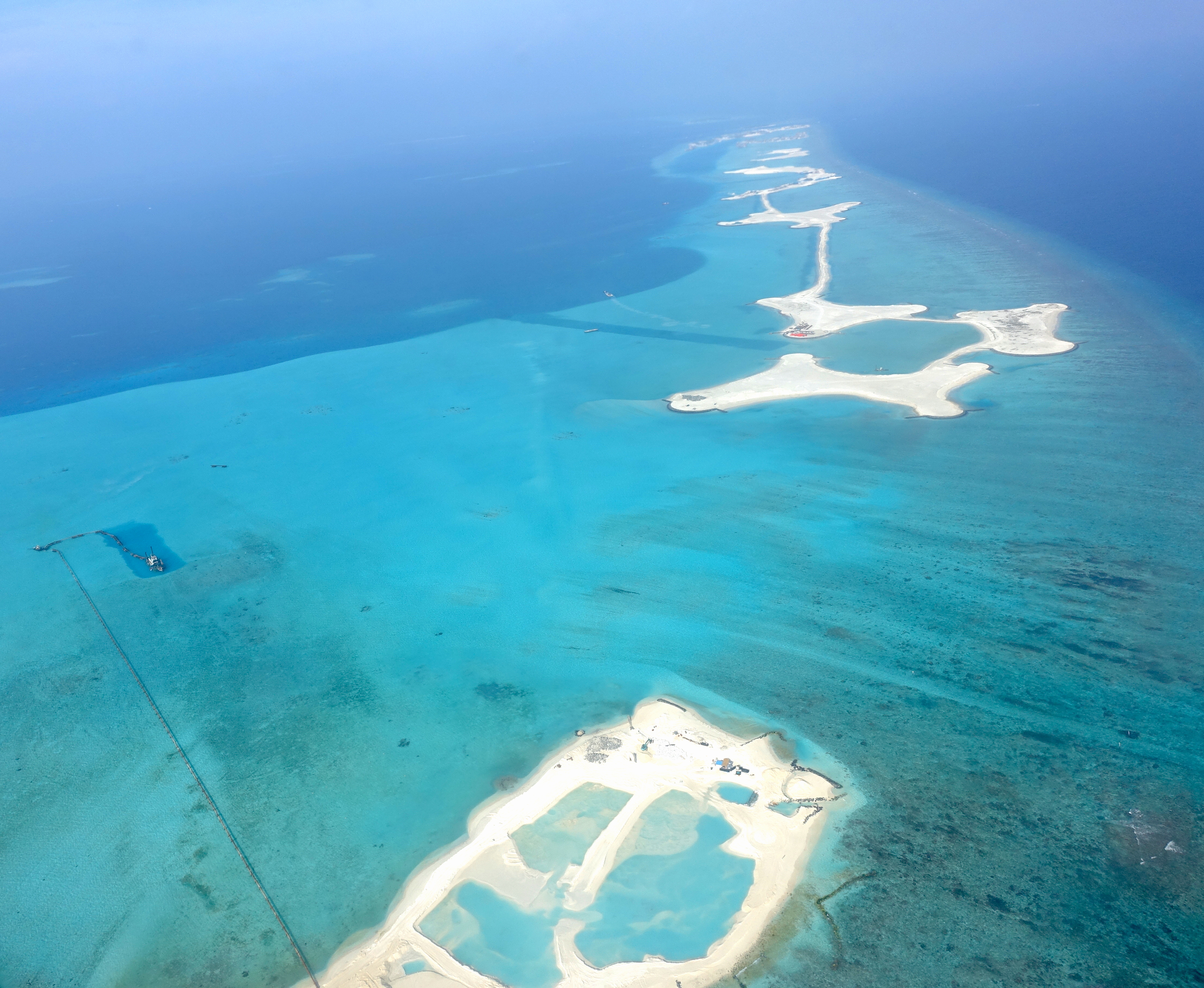 중국은 2015년 중반까지 팔라완 섬 연안 남중국해에 총 2000acre 규모의 인공섬 7개 이상을 건설하는 매립 공사를 진행했다.[22] 스프래틀리 군도 근처 파이어 크로스 환초(Fiery Cross Reef)에 건설된 한 인공섬에는 현재 군사 막사, 감시탑, 그리고 중국 인민해방군 군용 항공기가 이착륙할 수 있을 만큼 긴 활주로가 있다.[23]