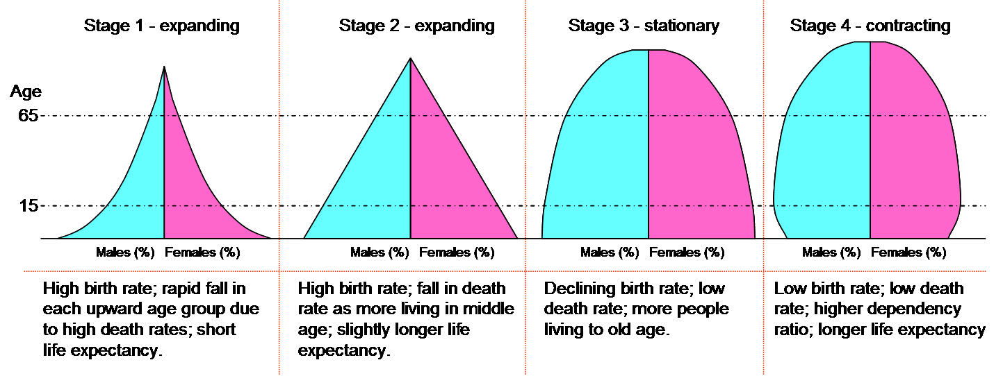 인구 변천은 일반적으로 다음과 같은 단계를 거친다.