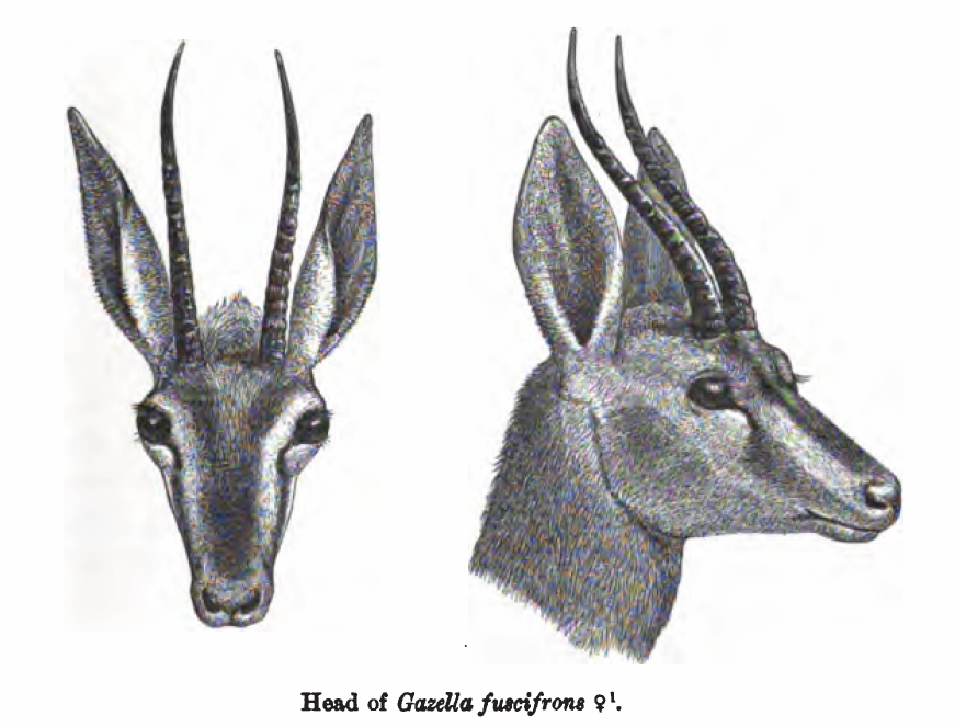 Blyth, 1842) – 파키스탄, 인도 서부, 카치 란, 카티아와르, 사우라슈트라 지역의 사막 저지대에서 아흐메다바드 구 동쪽, 구자라트까지 분포한다.[2]2. 3. 케니언가젤 (''G. b. fuscifrons'')