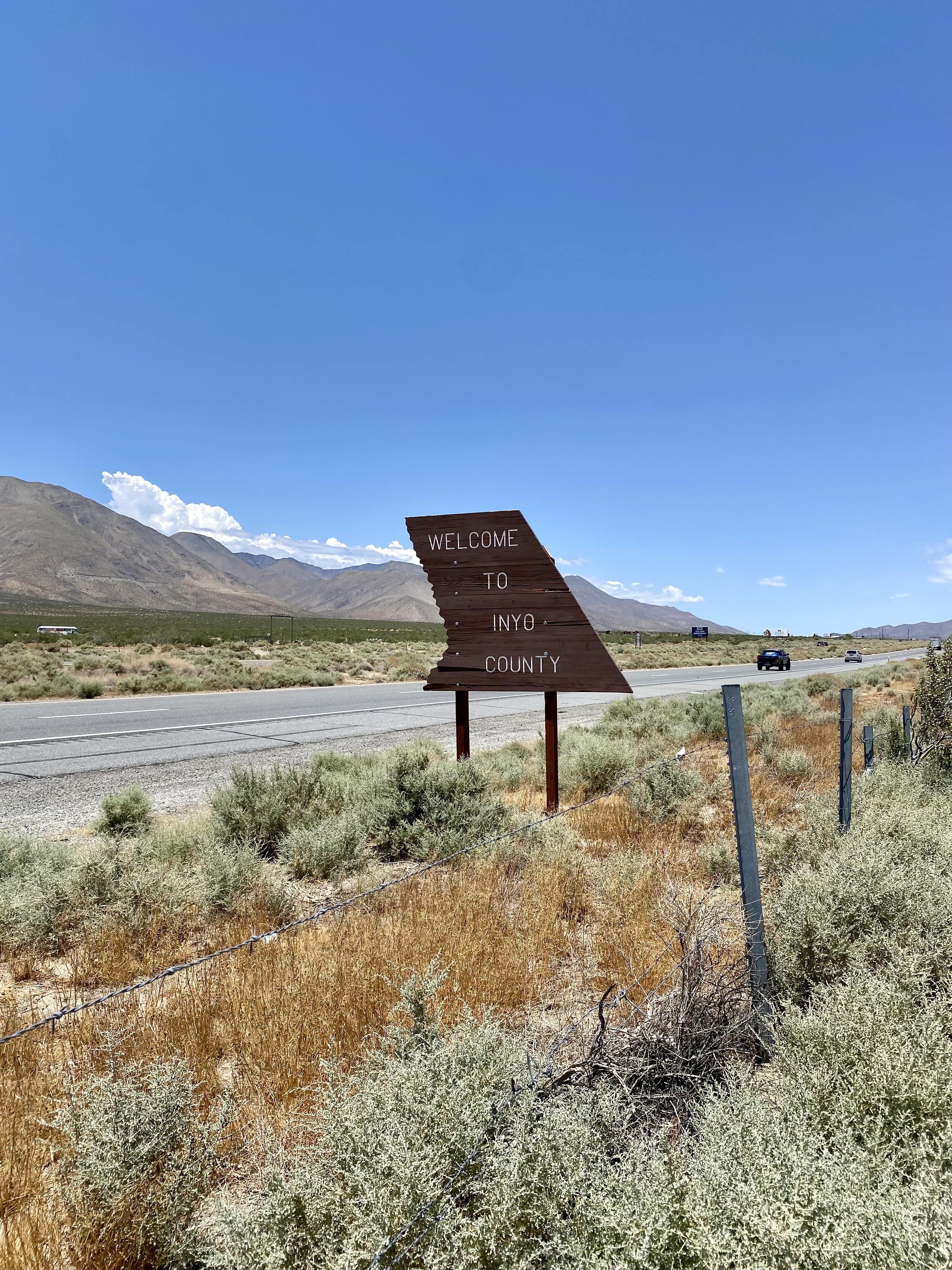 마운트 휘트니 (상단)는 데스 밸리의 배드워터 분지 (하단)에서 약 144.84km 이내 거리에 있다. 인요군은 원주민 역사와 관련된 다양한 사건과, 캘리포니아 수자원 확보와 관련된 역사를 가지고 있다.