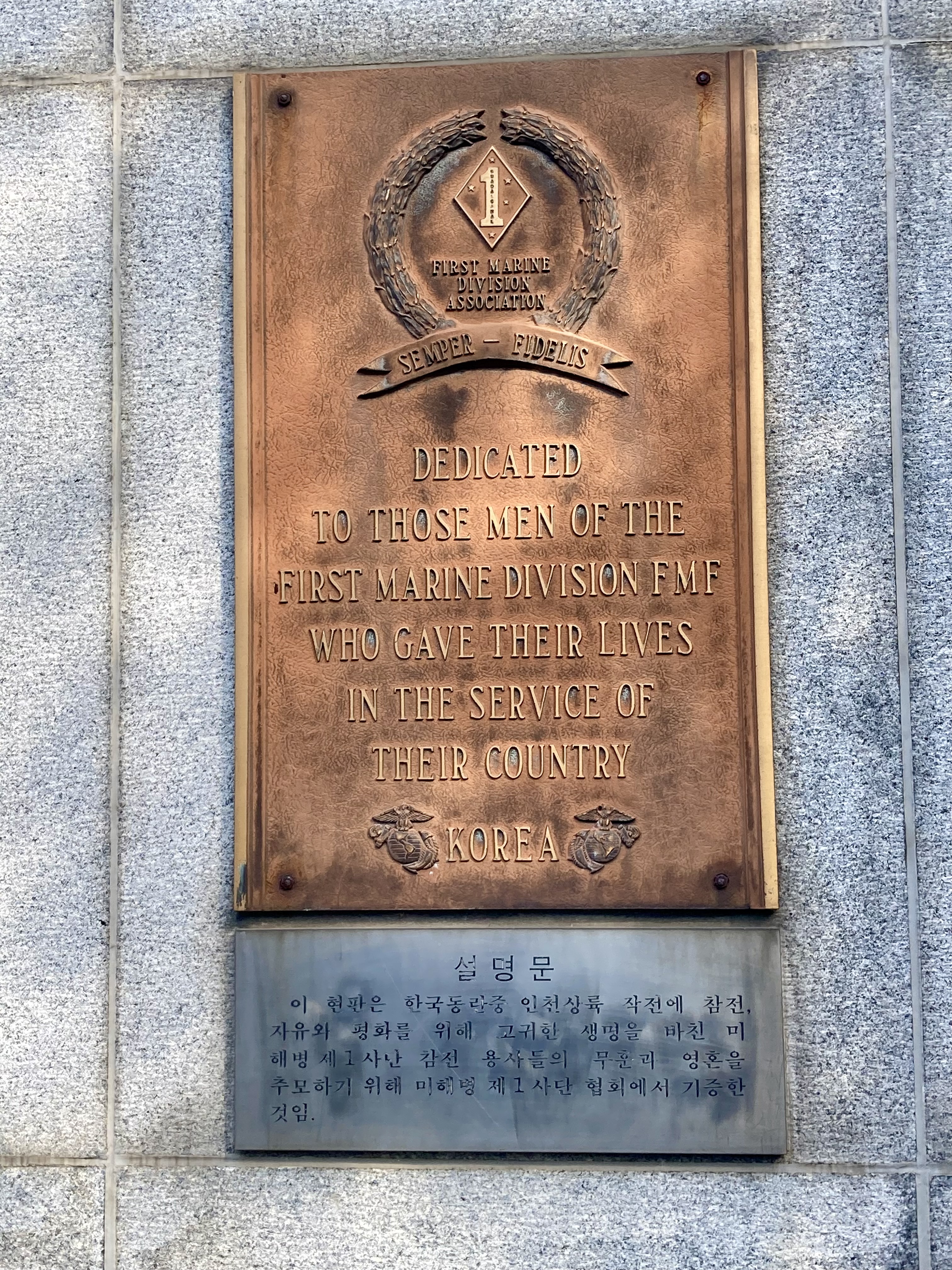 미국 해병대의 활약상, 국군과의 서울 탈환, 자유수호의 탑, 야외 조형물과 한국 전쟁 당시 함포, 전차, 상륙함, 공군기 등이 배치되어 있다. 북한군이 사용한 고사포 또한 배치되어 있다.