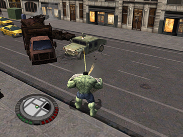 도시의 모든 물체와 건물은 파괴 가능하며, 파편은 무기나 장치로 활용할 수 있다. 예를 들어 기둥은 창, 벽 조각은 방패로 쓸 수 있다. 파괴 행위는 군대의 주의를 끌고, 군대는 무기와 기계로 헐크를 공격한다. HUD에 표시되는 헐크의 위협 수준은 파괴가 심해질수록 높아진다. 이에 따라 군대는 장갑차, 탱크, 헬리콥터, 헐크버스터 로봇 등 강력하고 정교한 장비를 사용하며,[3] 최고 위협 수준에서는 토니 스타크가 헐크버스터 갑옷을 입고 등장한다.[4]
