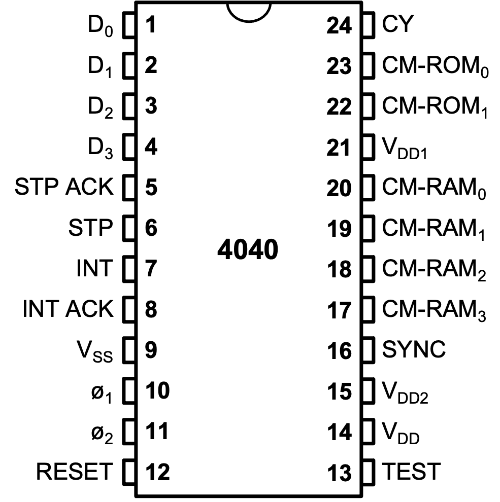 4040은 기본적으로 4004를 확장한 것으로, 추가 핀, 더 많은 레지스터, 그리고 이를 활용할 수 있는 새로운 명령어를 갖추고 있었다.