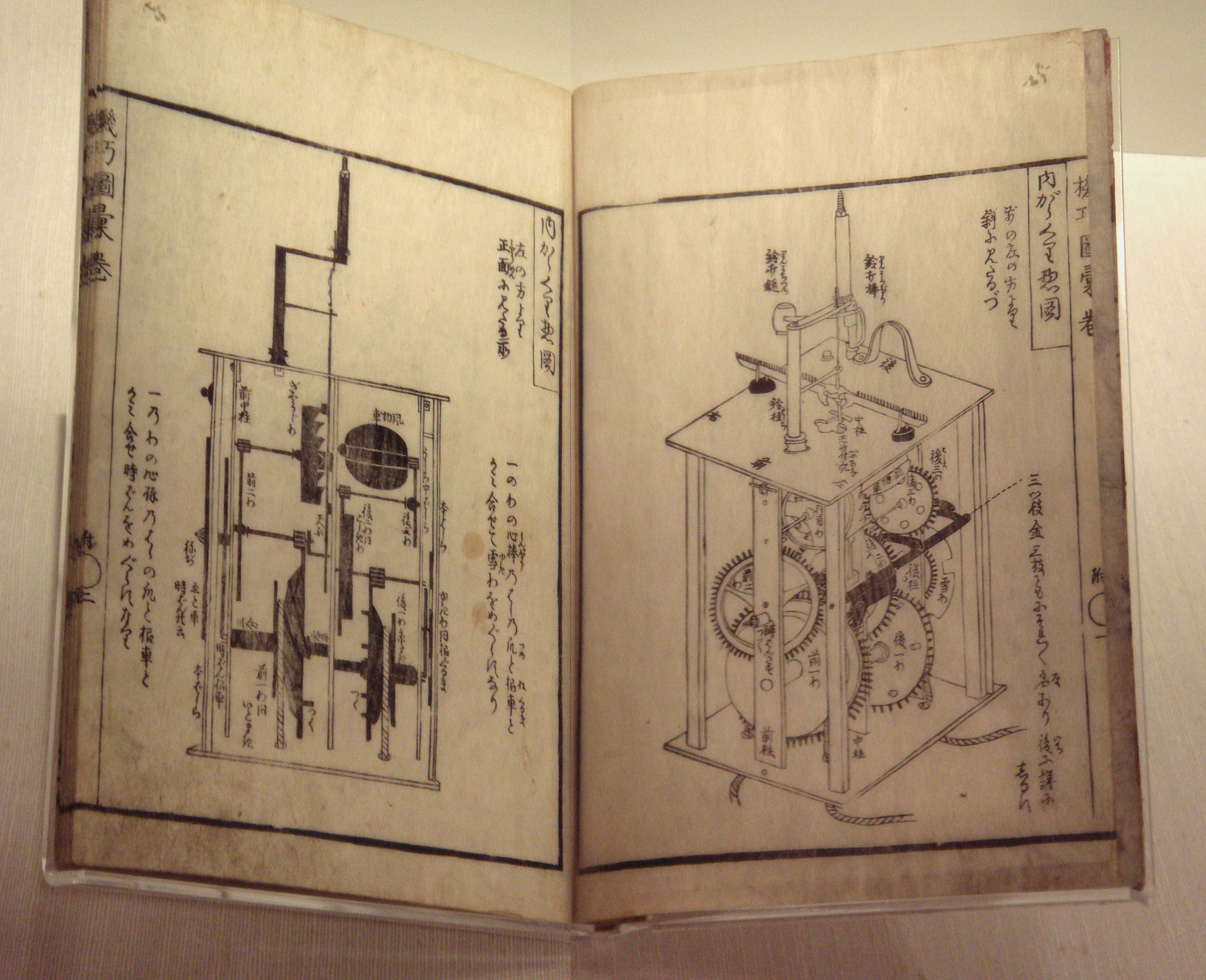 호소카와 한조가 1796년에 쓴 『기교도휘』(機巧図彙|카라쿠리 즈이일본어)는 가라쿠리 인형과 함께 와시계의 구조와 제작법을 상세히 설명한 중요한 자료이다.[39][7] 다나카 히사시게가 1851년에 완성한 만년 시계(万年時計|만넨도케이일본어)는 서양식 시계 기능과 함께 부정시법에 따른 시간 변화를 자동으로 조절하는 기능을 갖춘 복잡하고 정교한 시계로, 일본 시계 기술의 정점을 보여준다.[42][10]
