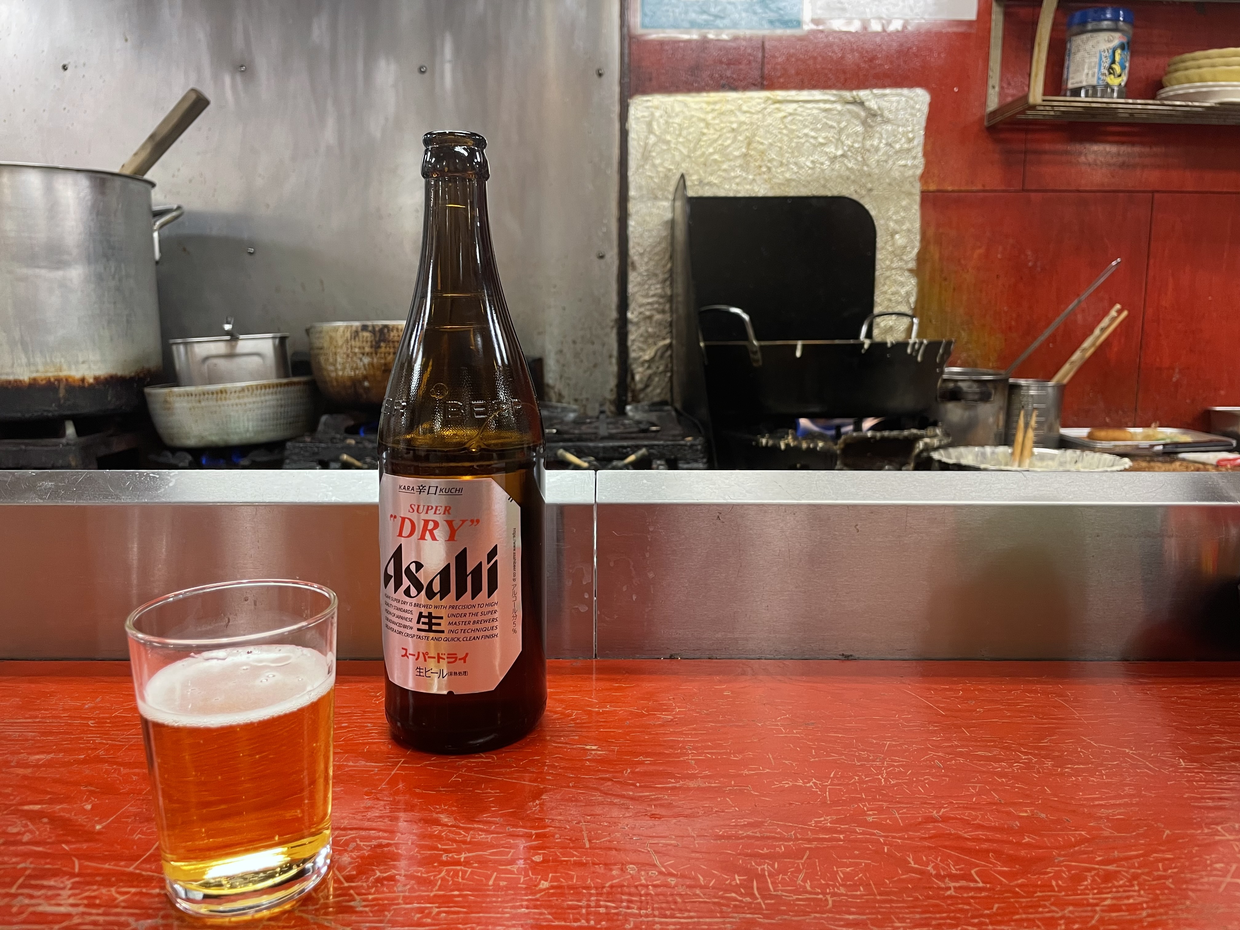 1980년대 중반 무렵의 아사히 맥주는 "저녁 노을 맥주"라고 조롱받을 정도로 실적이 부진했다. 당시에는 쓴맛이 강한 라거 스타일이 일본 맥주의 주류였는데, 아사히는 맥아량을 줄이고 옥수수 전분 등의 부원료의 비중을 늘려 발효도를 높여 알코올 도수를 높인 "아사히 슈퍼 드라이"를 개발하여 1987년에 출시했다. 기존의 아사히 맥주도 "깊은 맛과 깔끔함이 있다"는 평가를 받았지만, 그 평가를 더욱 발전시켜 "깔끔함"에 특화된 상품이었다. 지역 한정으로 출시된 슈퍼 드라이는 곧 전국으로 확대되었다. 슈퍼 드라이의 첫해 판매량은 1350만 상자로 맥주 신제품의 판매 기록을 갱신했다.
