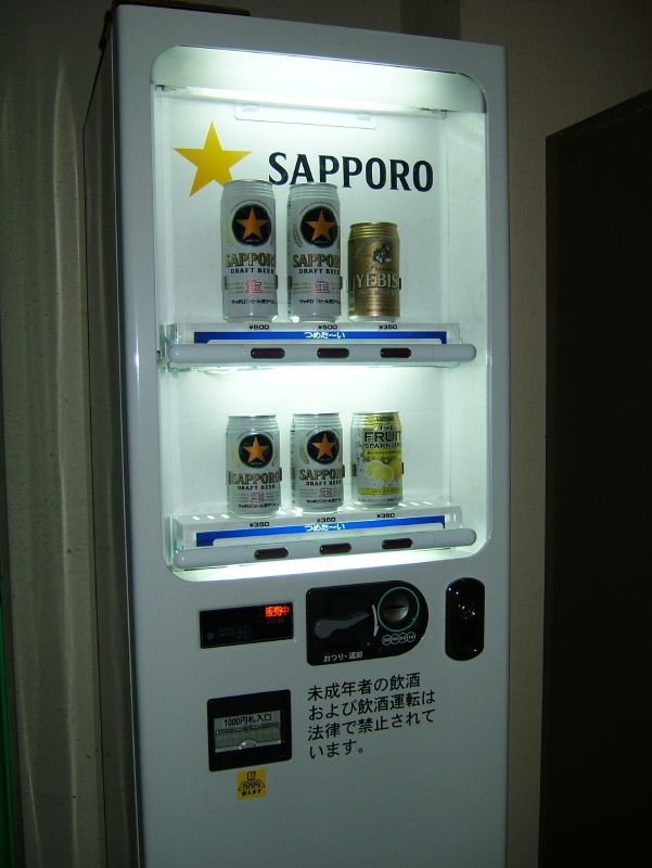 일본에서는 서비스를 제공하는 레스토랑과 술집 외에도 슈퍼마켓, 편의점, 기차역 매점 등 다양한 판매점에서 맥주를 구입할 수 있다. 맥주는 자동 판매기에서도 판매될 수 있었지만,[72] 2012년 기준으로 주요 도시에서는 그 빈도가 훨씬 줄어들었다. 일부 자동 판매기에는 소형 TV 화면이 내장되어 움직임에 따라 광고가 표시된다. 이러한 자동 판매기에서는 TV에서 방영되고 라디오에서 들을 수 있는 맥주 광고와 징글이 재생된다. 이러한 자동 판매기는 미성년자 음주에 대한 우려로 인해 2000년 6월부터 점차적으로 사라지기 시작했다.