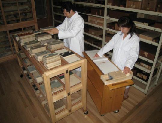 도서과 도서료 문고 출납계, 수장고 내에서의 작업 풍경