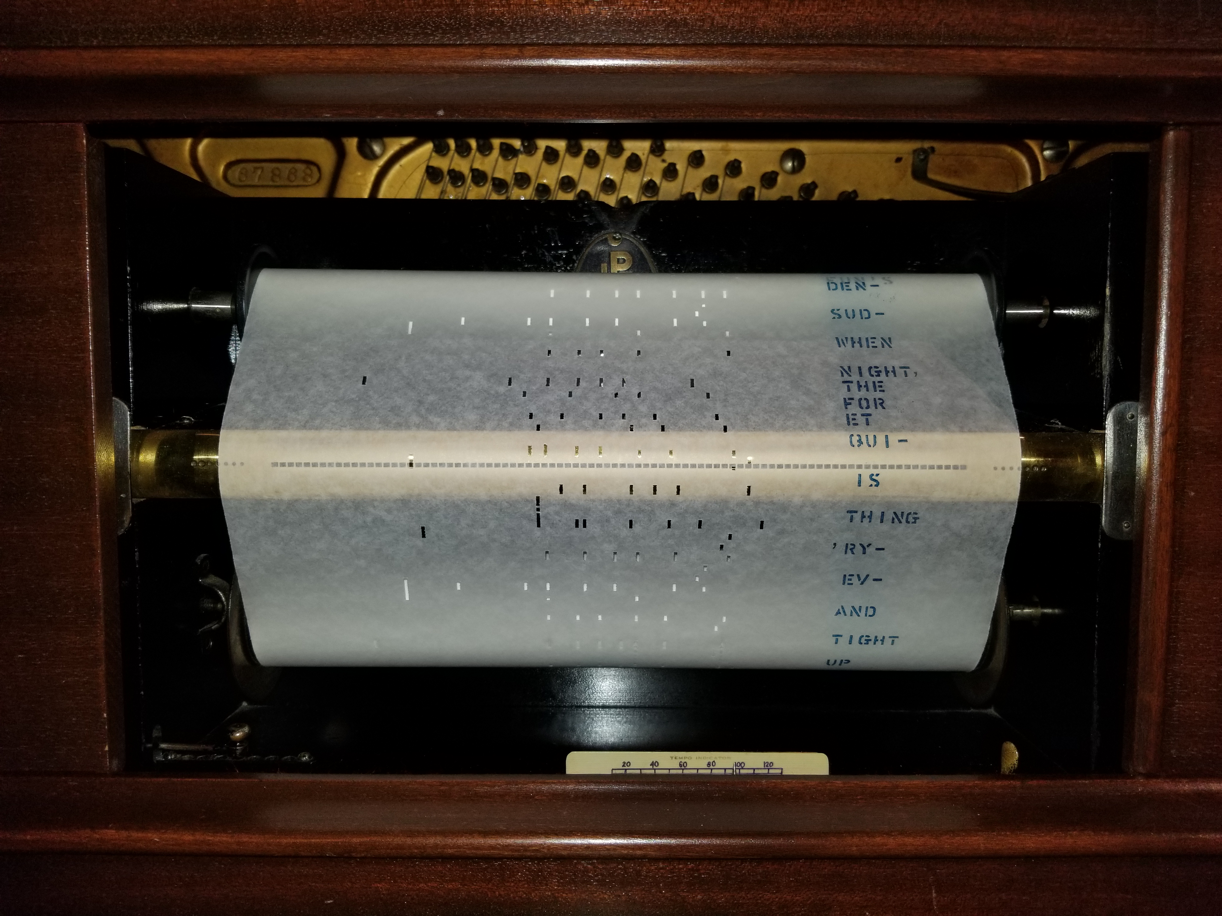 20세기에는 펀치 카드와 펀치 테이프가 널리 사용되었다. 구멍이 뚫린 부분은 1을, 구멍이 없는 부분은 0을 나타냈으며, 기계식 또는 광학식 판독기를 사용하여 입력했다.[11]