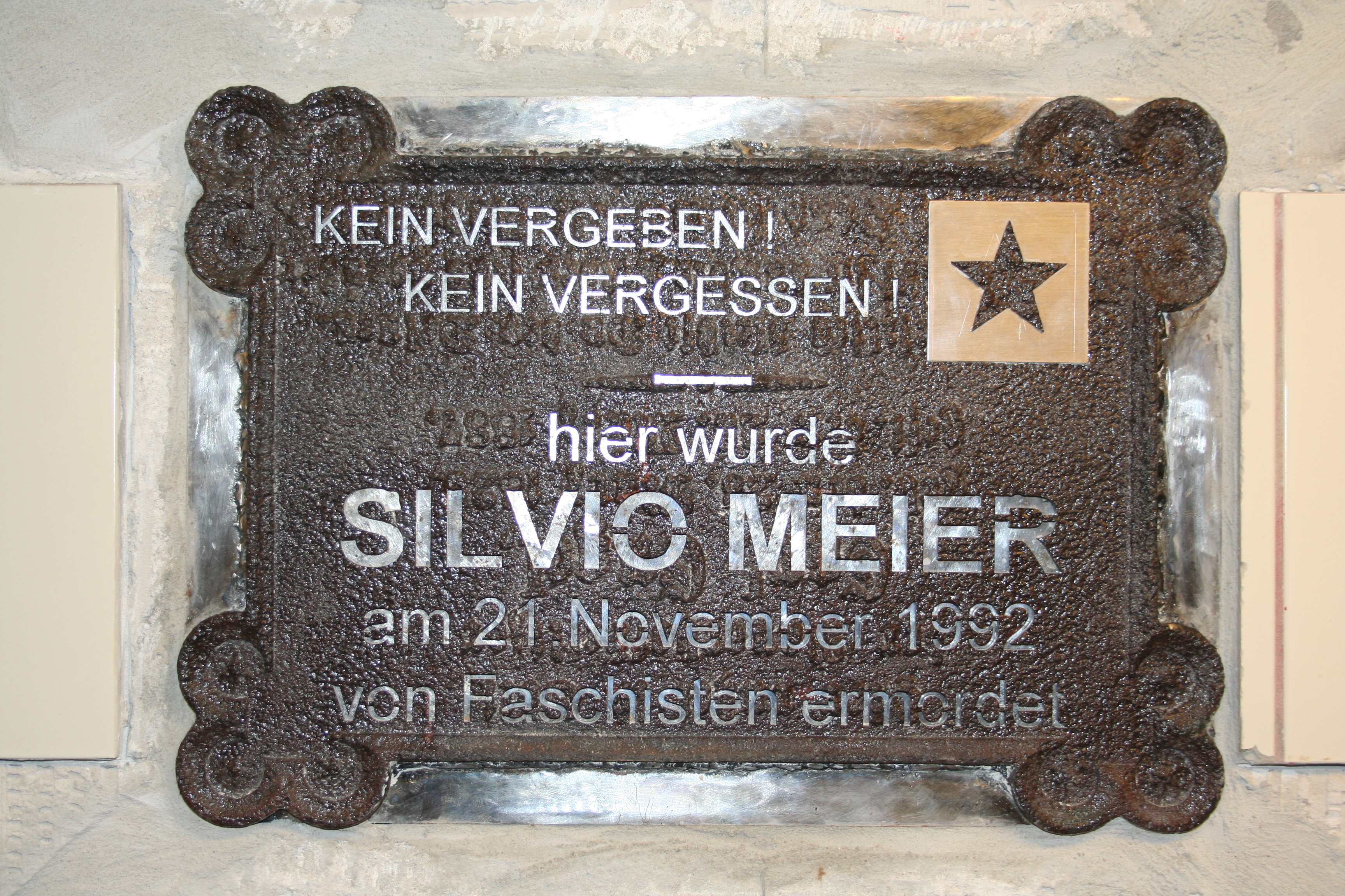 1992년 11월 21일, 이 역 대합실에서 네오나치에 의해 실비오 마이어가 살해되는 사건이 발생했다.[1][2] 사건 발생 장소에는 기념패가 설치되었으며, 여러 차례 도난과 재설치를 반복했다. 사건 이후 그의 기일에 지하철역에서 집회가 개최된다.