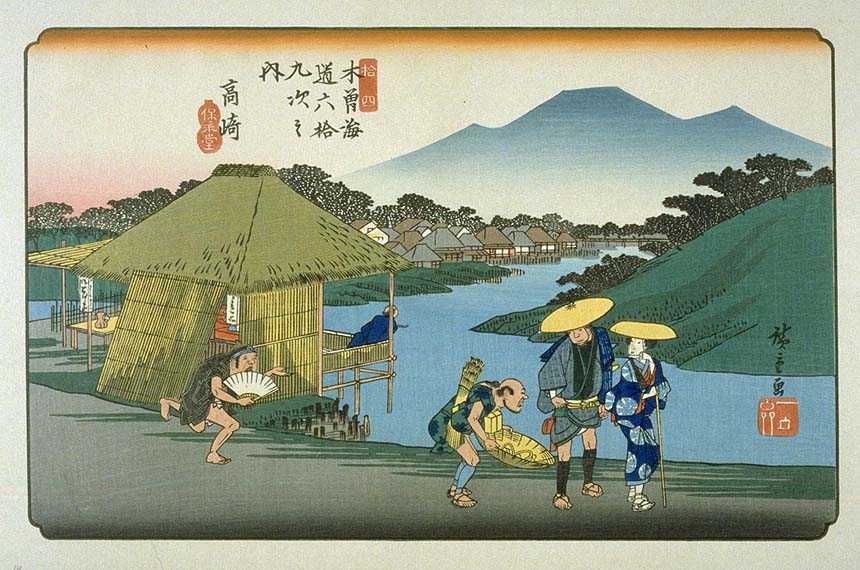 - 5. 「기소 가이도 다카사키」 :「다카사키주쿠」. 우타가와 히로시게 그림.
