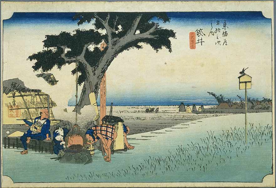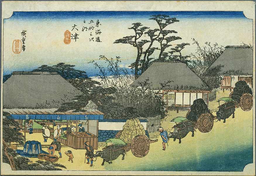 - 2. 「오쓰」(통칭 「오쓰 하시리이 찻집」) : 오쓰주쿠의 명물 하시리이모치|走井餅일본어를 파는 찻집이 그려져 있다.