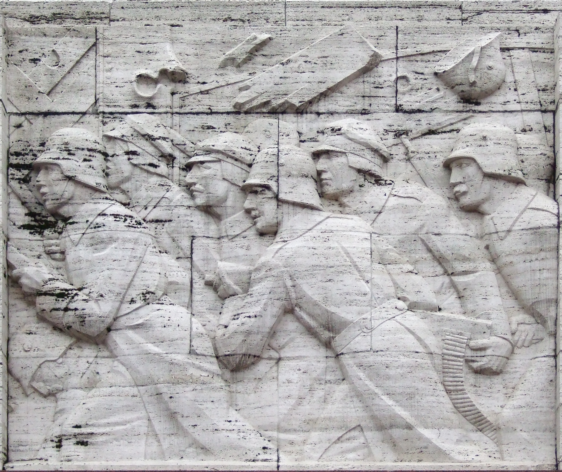 8 | Cīņa pret bermontiešiem uz Dzelzs tiltalv | 철교에서 베르몬트군과의 전투 | 측면 패널 | 라트비아 독립 전쟁 중 리가 전투 기념 부조 |