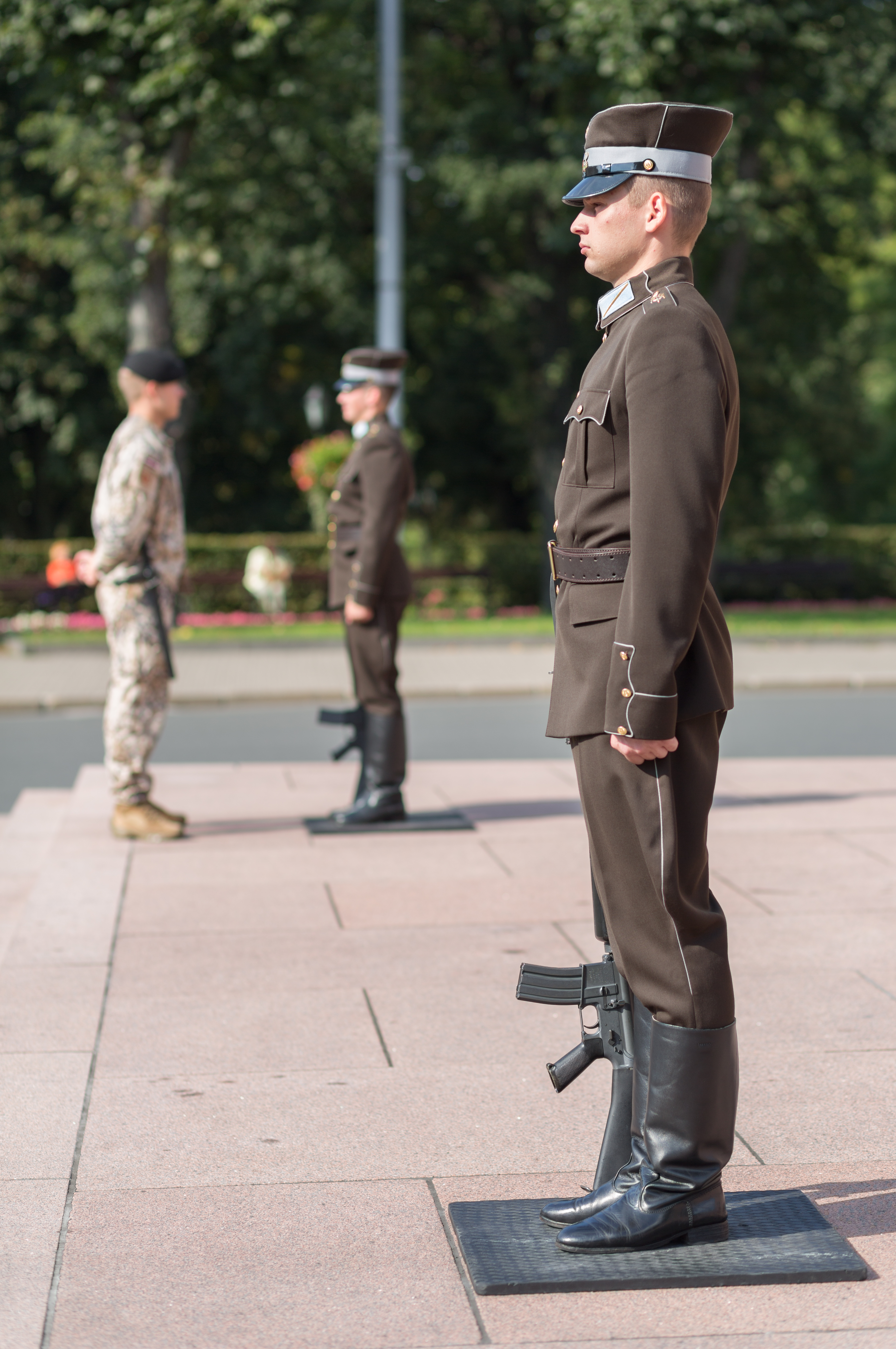 9 | Tēvzemes sargilv | 조국의 수호자 | 정면 하단 | 고대 라트비아 전사와 현대 군인 조각 |