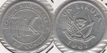 1967년, 콩고 국립 은행은 10상기, 1리쿠타, 5마쿠타 액면의 주화를 도입했다. 10상기와 1리쿠타는 알루미늄으로, 5마쿠타는 백동으로 만들어졌다.[2] 1973년에는 자이르 은행이 발행한 최초의 주화인 백동 5, 10, 20마쿠타 주화가 나왔다. 1987년에는 새로운 주화가 도입되었는데, 황동 1, 5자이르와 1988년의 10자이르가 포함되었다.[2]