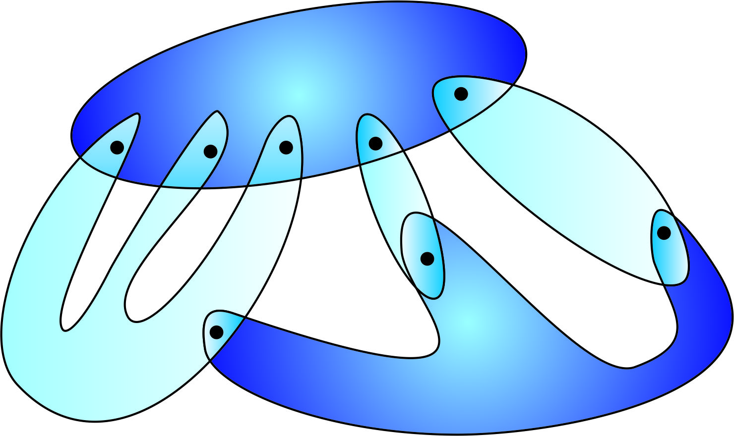 이때, 와 의 교집합은 두 개의 연결된 성분으로 구성된다.
