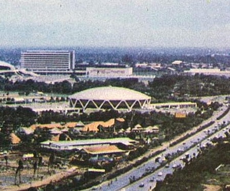 자카르타 컨벤션 센터 단지 건설은 1960년, 인도네시아 신생 국가의 수도로서 자카르타의 웅장함을 과시하려는 수카르노의 야심의 일환으로 시작되었다. 1963년 신흥국 경기대회 전에 완공될 예정이었지만, 완공되지 못했다.[3] 컨벤션 센터는 1974년 4월 초에 열린 제23회 태평양 아시아 관광 협회 회의 개막식에 맞춰 완공되었다. 이 회의는 자카르타의 주요 행사였으며, 호텔 인도네시아 확장, 보로부두르 호텔, 앰배서더 호텔(현재 아리아두타 호텔), 사히드 자야 호텔과 같은 여러 대형 호텔 프로젝트도 PATA 회의 시작 전에 완공을 목표로 했다. 원래 JCC는 건축가 Soejoedi Wirjoatmodjo가 설계한 단일 돔 형태의 본회의장이었다.[1][3]