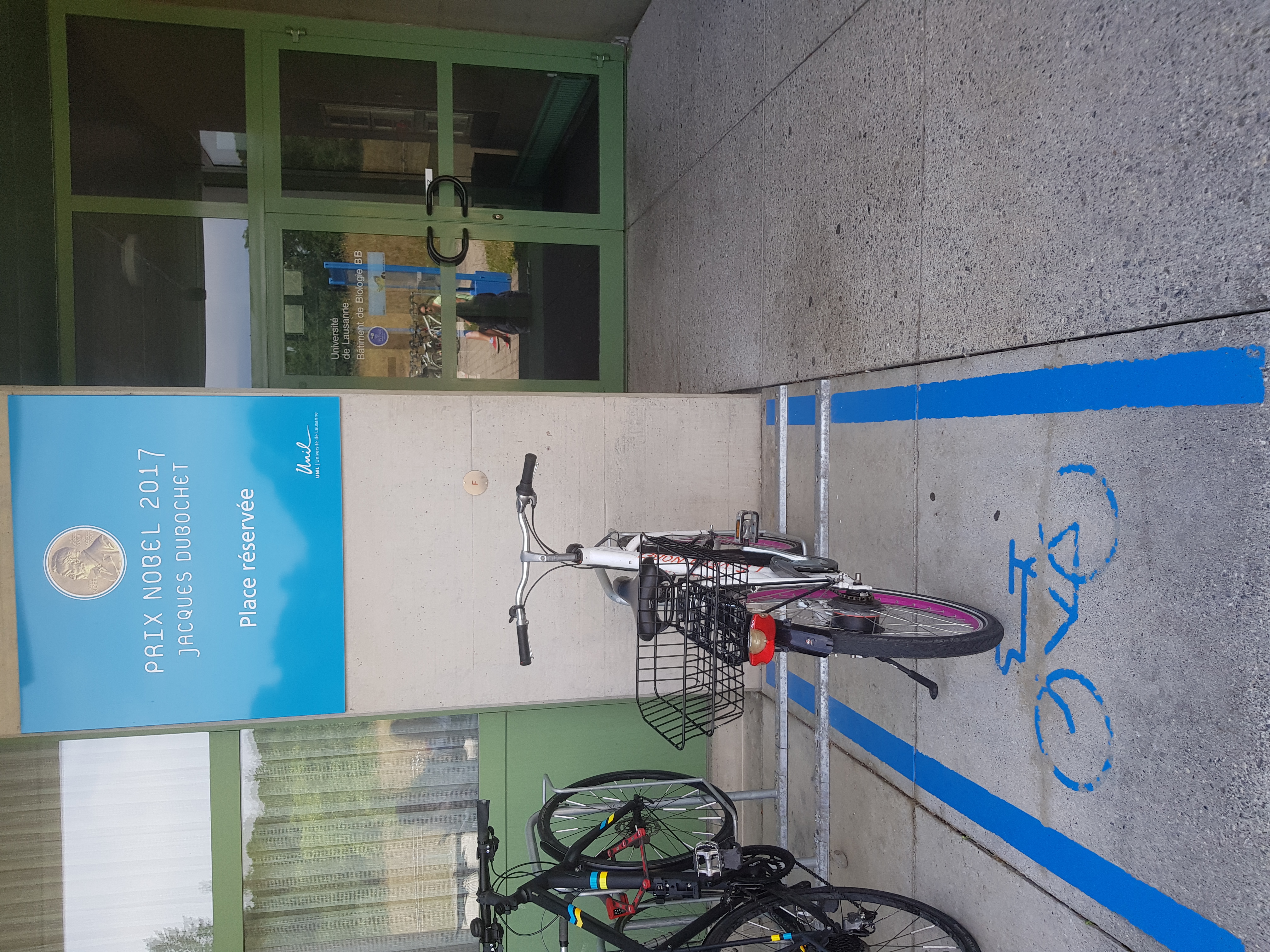 대학에서 그의 노벨상을 어떻게 기념해주면 좋을지에 대한 질문에, 뒤보셰는 자전거 주차 공간을 요청했고, 이는 받아들여졌다. 그는 30년 동안 거의 매일 실험실까지 자전거를 타고 다녔다.[15]