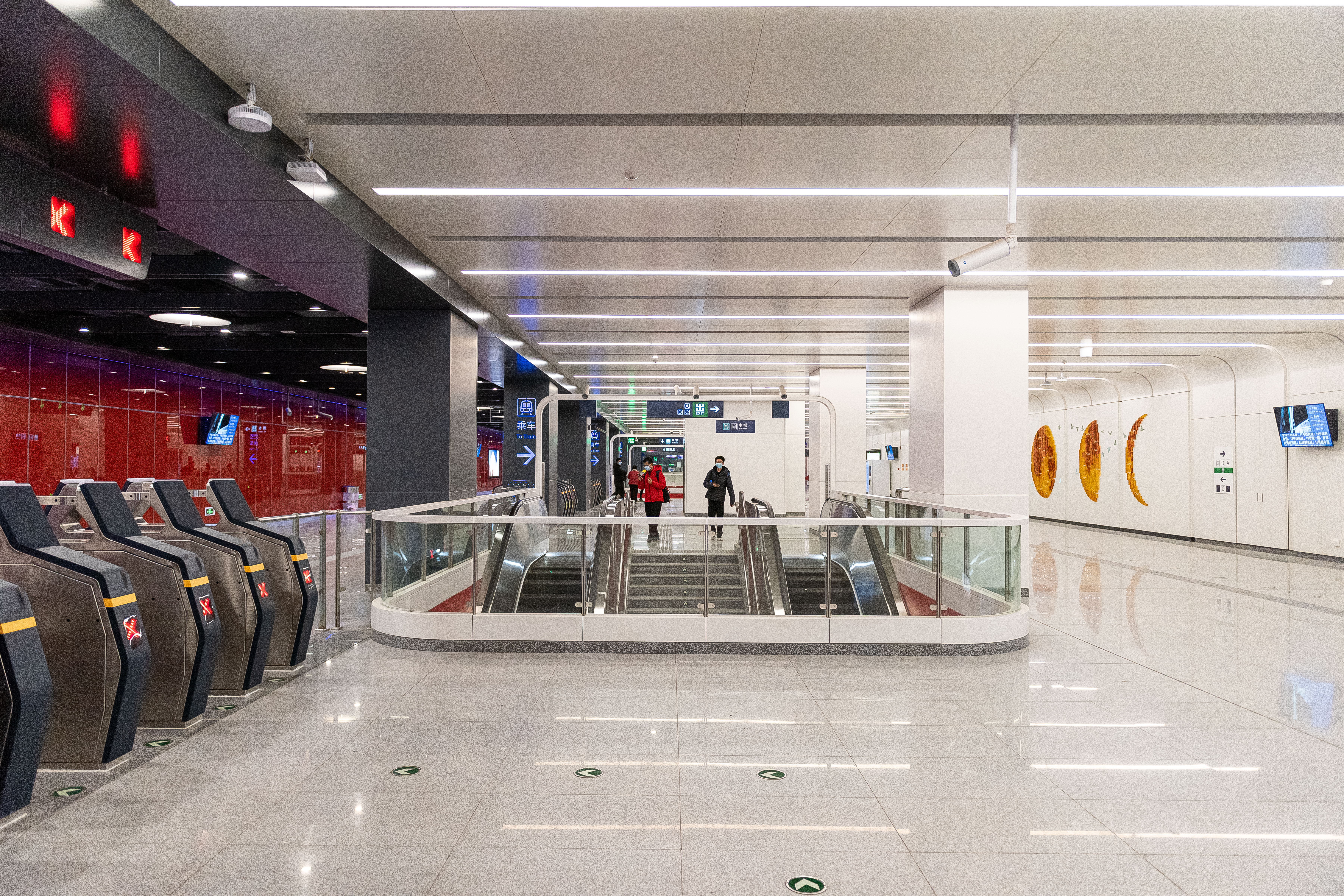 이 역은 총 길이 445.8m, 표준 구간의 너비 23.1m, 구조순 높이 14.5m의 개찰식 지하 2층 2기둥 3경간식 역이다. 본 역의 서쪽 끝에는 열차가 역 전 반환을 할 수 있도록 1개의 교차선이 있고, 동쪽 끝에는 역 뒤에 이중 교차선이 있으며, 17호선 열차는 본 역 동쪽에서 역 뒤에 회차를 실시한다. 대합실 남쪽에는 궈리밍(郭立明)이 디자인한 공공예술작품 《월유음청원결(月有阴晴圆缺)》이 배치돼 있다.[4]층 | 시설 | |