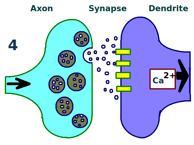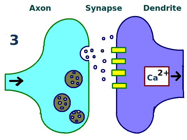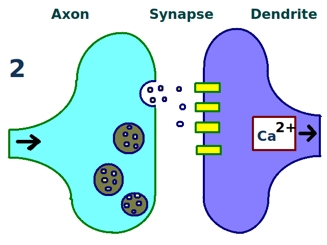 일반적인 시냅스 전달 과정을 통해, 테타누스 자극으로 전기 장기 강화가 유도되는 방식을 이해할 수 있다. 화학 시냅스는 신경계 곳곳에 존재하는 신경 세포 간의 기능적 결합이다. 시냅스 전 세포에 펄스 자극을 가하면 신경 전달 물질 (예: 글루탐산)이 시냅스 후 막으로 방출된다. 방출된 글루탐산은 시냅스 후 막에 있는 AMPA형 글루탐산 수용체 (AMPAR)에 결합한다. AMPA형 글루탐산 수용체는 뇌의 주요 흥분성 수용체 중 하나이며, 즉각적인 흥분성 활동을 일으킨다.[85] 글루탐산이 AMPA형 글루탐산 수용체에 결합하면 시냅스 후 세포로 나트륨 이온이 유입되어 흥분성 시냅스 후 전위 (EPSP)라는 짧은 시간의 탈분극이 일어난다.