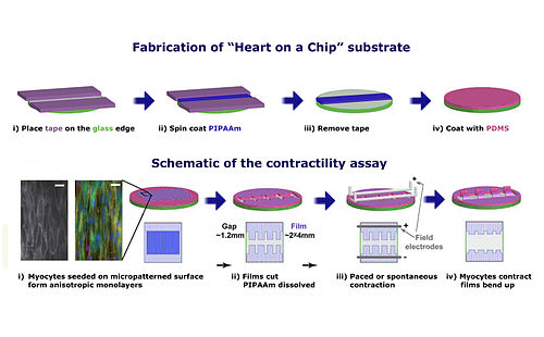 심장 칩은 2011년 미국 하버드 대학교의 위스 연구소(Wyss Institute) 소속 Kevin Kit Parker 연구팀에 의해 개발되었다. 이 칩은 심근, 심혈관 관련 질환 연구 및 신약 개발 분야에서 활용되고 있다.[132]