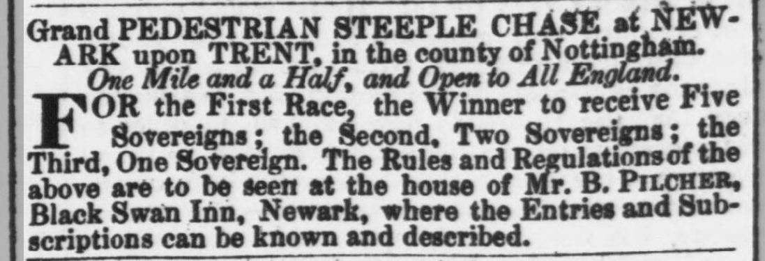 1834년 4월, 럭비에서 최초로 스테이플체이스를 개최했다. 학생들은 약 약 6.44km(약 6.4km) 떨어진 바비 언덕 꼭대기까지 달리며 울타리와 개울을 만났다.[17][18]