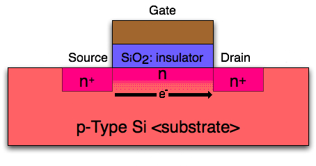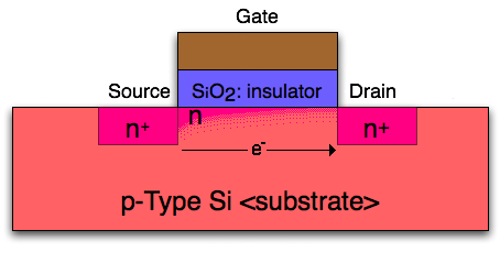 즉 소스, 드레인의 명칭은 캐리어(carrier)의 도통 방향(캐리어의 발생원이 소스, 캐리어의 행선지가 드레인)에 의해 결정됨