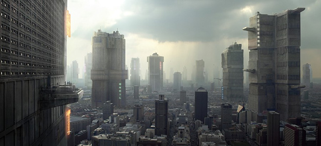 제작진은 메가 시티 원의 시각적 요소, 특히 도시의 고층 건물 디자인과 배치에 대해 실험하여, 도시가 다른 잔해에서 솟아오른 듯한 인상을 주고자 했다. 그들은 만화의 시각적 요소인 블록을 가깝게 복제하면 블록이 작아 보인다는 것을 발견했다. 대신 건물 사이에 더 많은 공간을 두어 더 큰 건물을 강조하고 도로와 자동차의 존재를 허용하여 그림 밖으로의 추론을 가능하게 했다. 돌출부와 부속물을 추가하여 건물의 직선을 끊었다.5. 음악