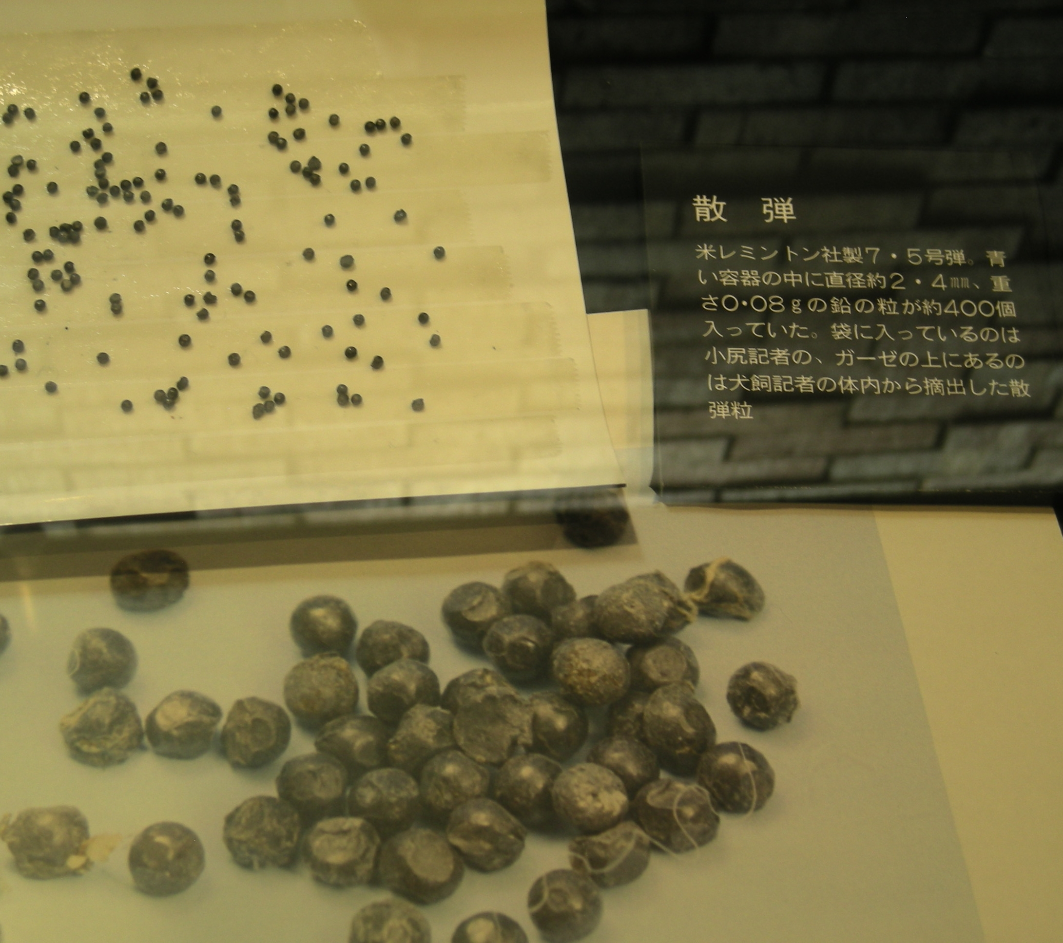 1987년 5월 3일 밤, 아사히 신문 한신 지국에 괴한이 침입하여 총기를 난사, 고지리 도모히로 기자(당시 29세)가 사망하고, 이누카이 헤이베이 기자(당시 42세)가 중상을 입는 사건이 발생했다.[8] 범인은 검은 복면과 검은색 옷을 입고 산탄총을 들고 편집실에 침입하여 기자들에게 발포했다. 고지리 도모히로 기자는 지근거리에서 발포된 산탄총에 맞아 위, 소장, 복강, 신장 등에서 총 191개의 산탄알이 적출되었고, 다음날 사망했다. 이누카이 헤이베이기자는 왼쪽 가슴에 총을 맞았으나 지갑과 볼펜 덕분에 치명상을 피했고, 오른손 새끼손가락과 약지를 잃는 중상을 입었다. 현장에 있던 타카야마 켄지 기자(당시 25세)는 범인이 총구를 겨눴으나 발포하지 않아 무사했다.[8][9]