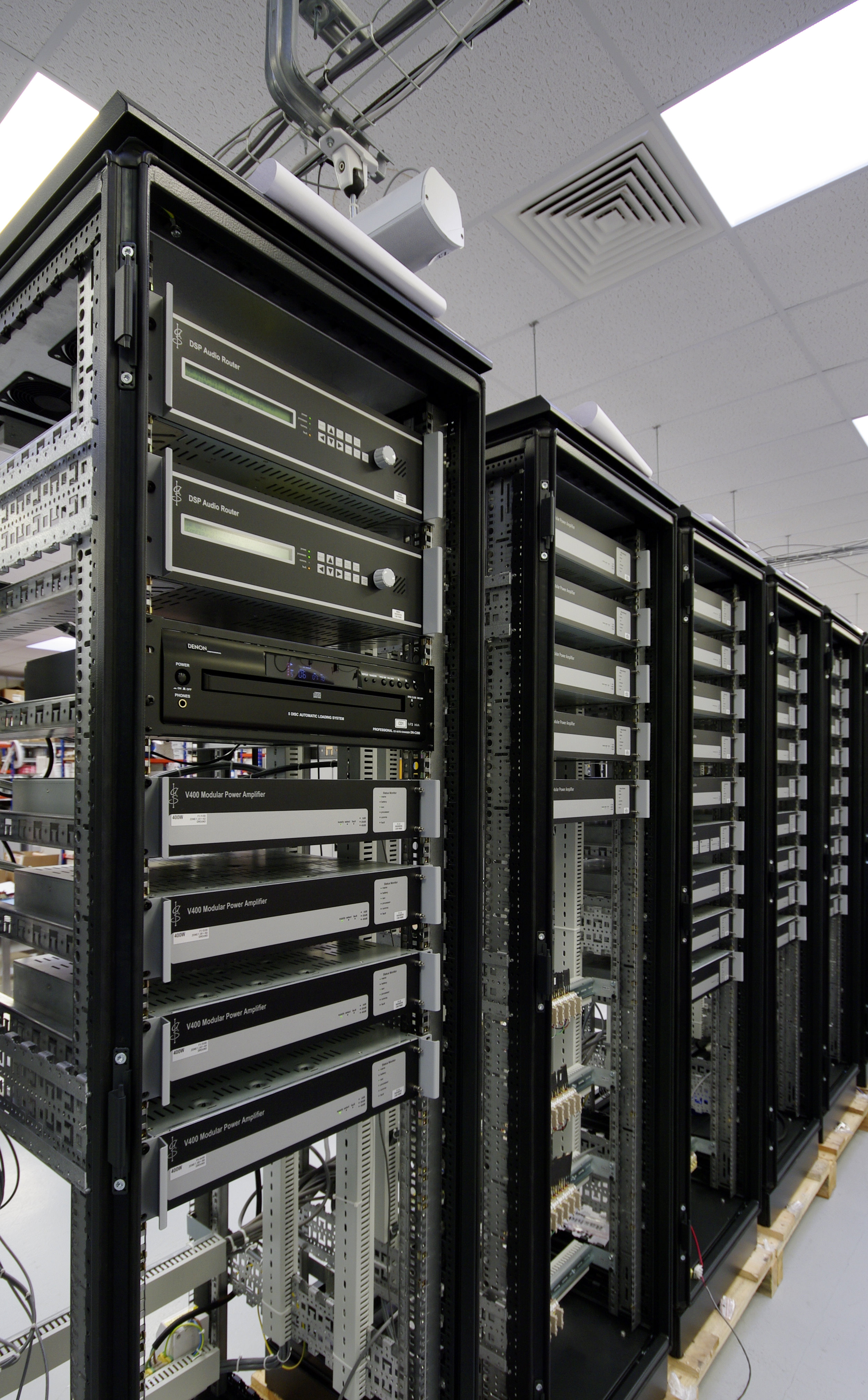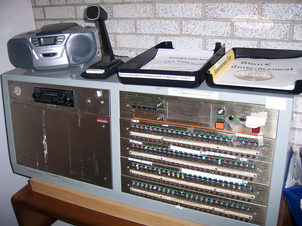 전관 방송(PA, Public Address) 시스템은 마이크, 음원 재생 장치 등의 입력 소스, 앰프, 제어 및 모니터링 장비, 라우드스피커 등으로 구성된다.[16]