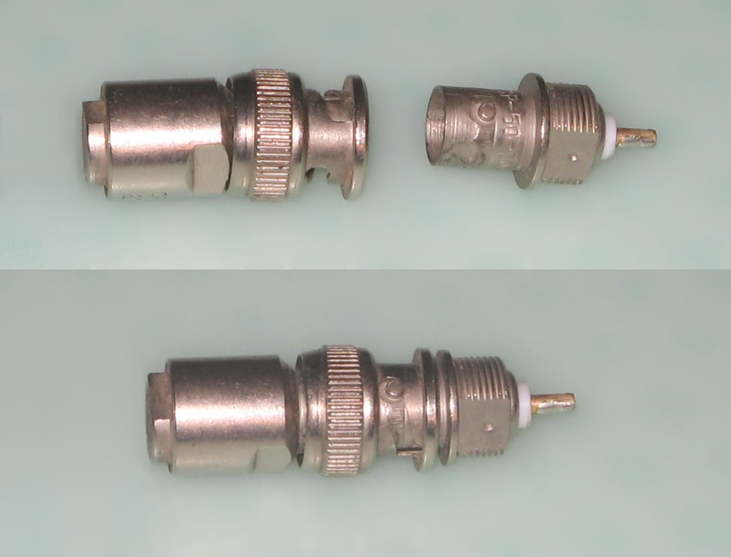 반대로, 오목하게 들어가 있거나, 심선이 들어가는 구멍이 있는 쪽을 "'''암'''("female")" 또는 "'''소켓 인서트'''" 등으로 부른다. 일반적으로 꽂히는 쪽이다.
