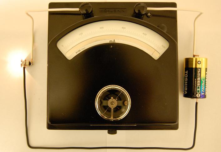 코일 속을 흐르는 전류의 방향을 반대로 바꾸면 코일은 반대방향으로 회전한다. 교류를 통하게 하면 전류의 방향은 주기적으로 바뀌므로 이에 따라 지침도 좌우로 움직이는데, 주파수가 높아지면 코일의 움직임은 전류의 방향 변화를 따를 수 없게 되고, 그 결과 지침은 전혀 움직이지 않는다. 즉 코일 속을 흐르는 전류가 직류가 아니면 측정할 수가 없다. 전선을 접속하는 측정단자에는 +,-의 기호가 들어 있다. 측정할 때에는 +단자로부터 -단자로 전류가 흐르도록 전선을 접속해야 한다.