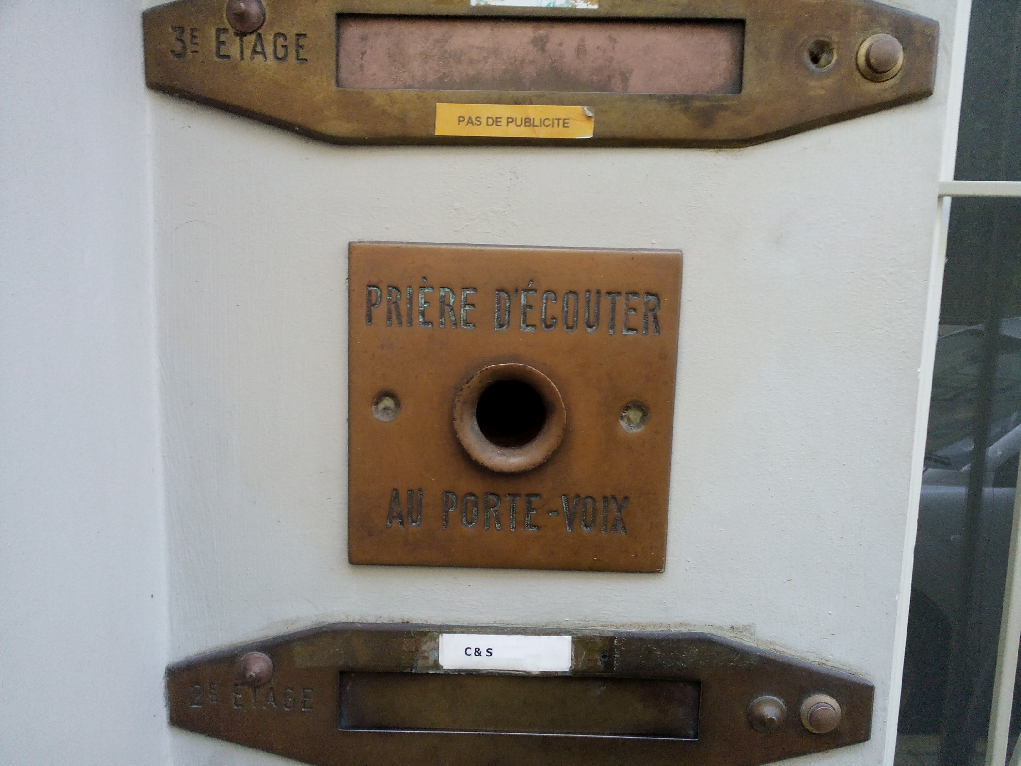 가정에서 사용되는 음성관은 더 작았으며 "스피킹 튜브"라고 불렸다. 튜브의 끝은 사용자가 쓰기 편하게 유연하게 만들어지는 경우가 많았다. 스피킹 튜브는 19세기에 비교적 작은 규모의 주택에서도 2층 방에서 작동하여 하인들의 숙소에서 울리는 원격 제어 핸드벨 배열을 보완했다. "혼을 잡아라", "그에게 한 번 불어봐", "송풍기"를 "전화"의 동의어로 사용하는 것은 일반적으로 스피킹 튜브의 이러한 특징에서 유래된 것으로 받아들여진다.