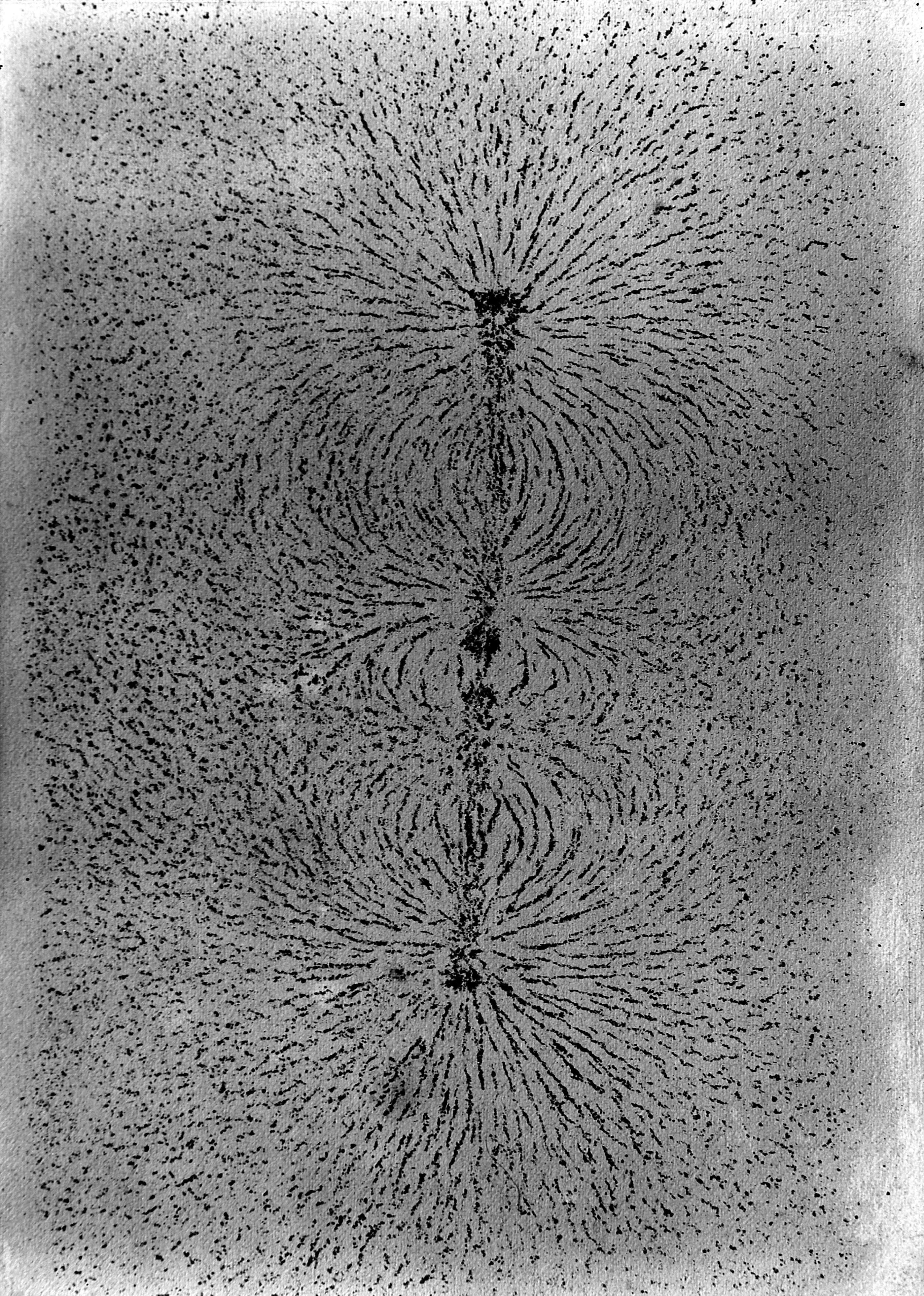 마이클 패러데이의 철가루 실험 결과 한국에서의 전자기학 발전은 고대부터 축적된 전자기 현상에 대한 이해를 바탕으로 이루어졌다. 기원전 600년경 탈레스는 호박과 동물의 털을 이용한 정전기 실험을 통해 전자기 현상을 처음으로 관찰했다. 18세기에는 같은 종류의 전하는 서로 밀어내고, 다른 종류의 전하는 서로 끌어당긴다는 사실과 이 힘의 세기가 거리의 제곱에 반비례한다는 사실이 밝혀졌다. 마이클 패러데이 는 전하 사이에 작용하는 힘을 전기장 이라는 개념으로 설명했다. 1820년 한스 크리스티안 외르스테드 는 전류가 흐르는 도선 주위에 자기장 이 발생한다는 것을 발견했고, 1831년 마이클 패러데이 는 시간에 따라 변하는 자기장이 전류를 유도할 수 있다는 것을 알아냈다. 1861년 제임스 클러크 맥스웰 은 전기와 자기 현상을 통합한 전자기 이론을 발표하고 빛이 전자기파 의 일종임을 밝혔다. 1877년 헨드릭 로런츠 는 전자기 현상의 원자 모델을 제시했고, 1897년 J. J. 톰슨은 전자 를 발견했다. 이후 양자 역학과 양자 전기 역학 이론이 발전하면서 전자기장에 대한 이해가 더욱 깊어졌다. 이러한 전자기장에 대한 이해를 바탕으로 1800년대 후반에는 발전기와 모터와 같은 실용적인 응용이 등장하기 시작했다.