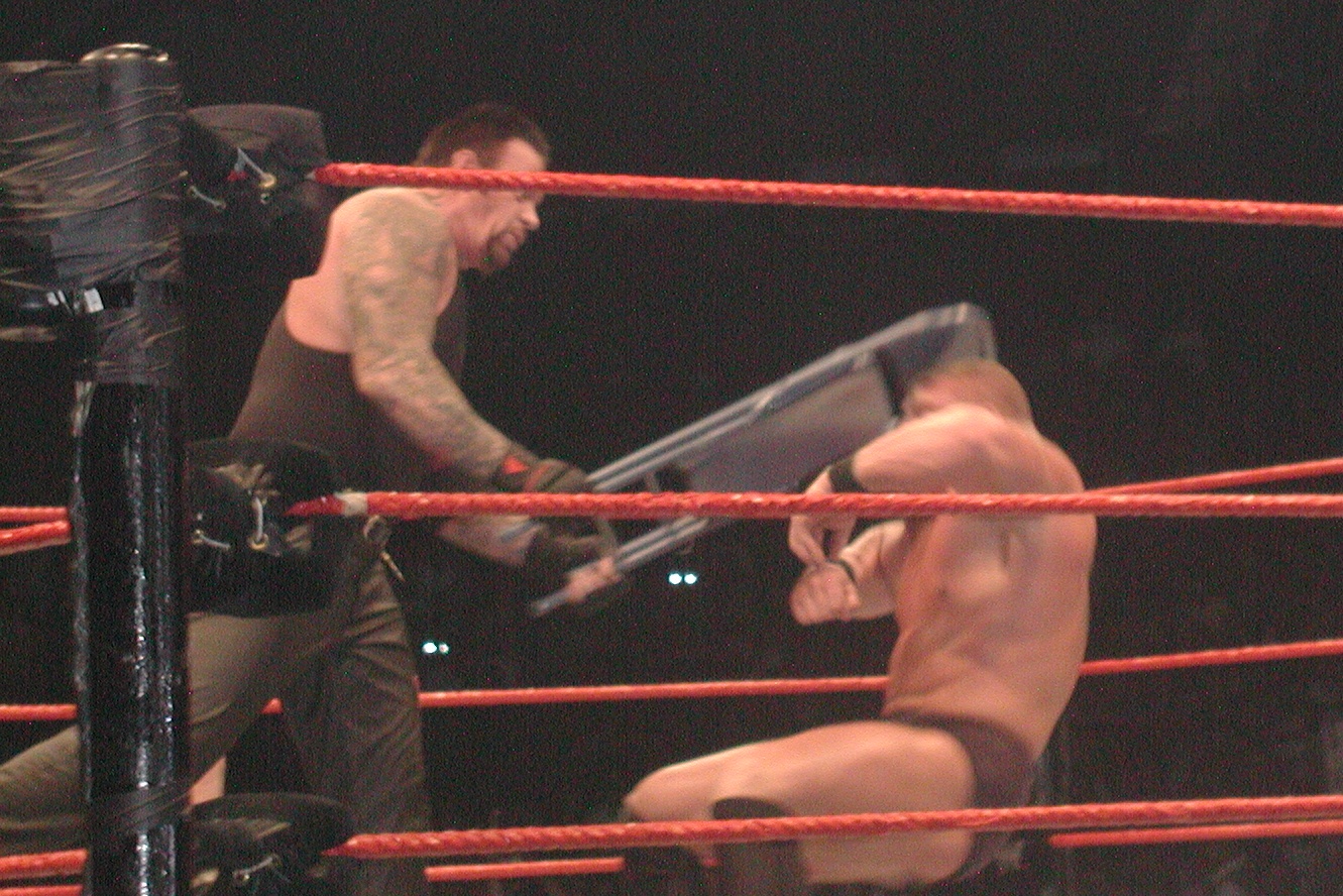- 프로레슬링에서 흉기로 경기장의 파이프 의자를 사용하는 경우, 좌석 면이 빠져서 부서지는 경우가 있으며, 후에 변상을 요구받는 경우가 있다(특히 고라쿠엔 홀의 파이프 의자는 한 개에 5000JPY(소비세 별도)으로 고가).[1] 이 때문에, 미리 자신의 파이프 의자를 준비하거나, 경기장의 의자를 부수지 않도록 요령껏 사용하는 등의 배려가 이루어진다.
